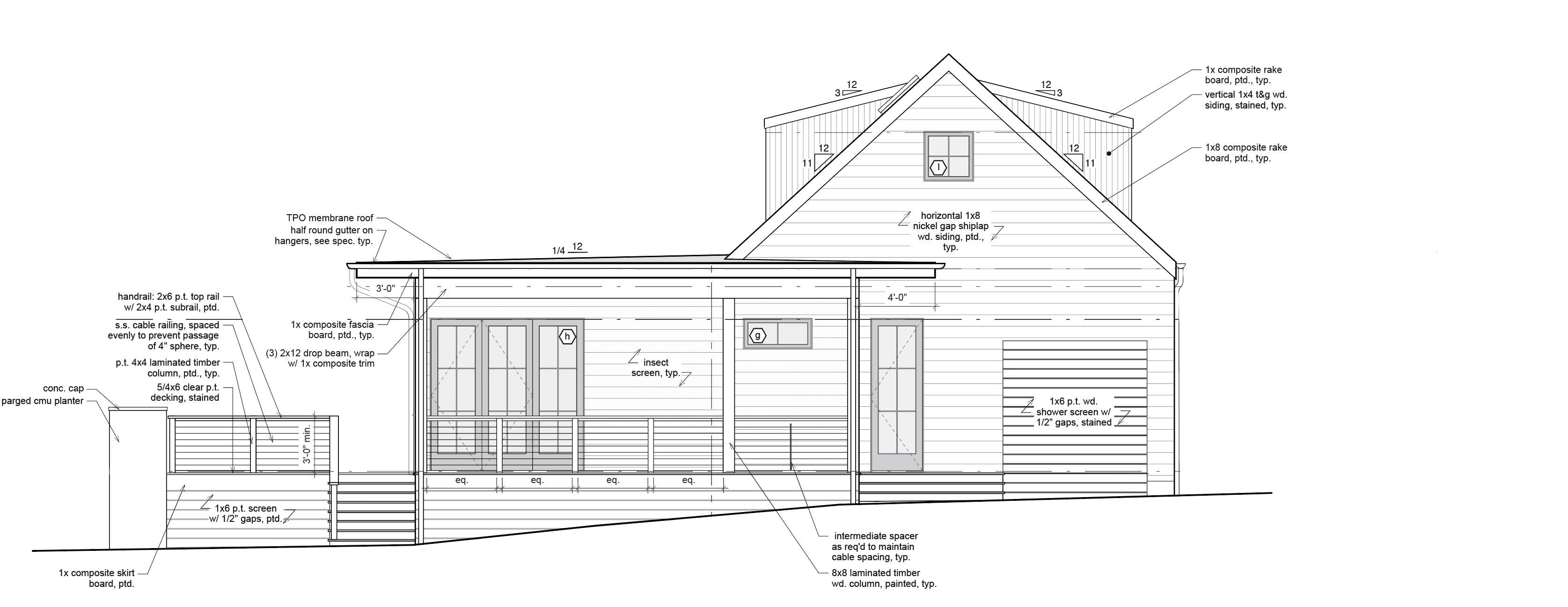 black windows with white trim and a black shingle roof black vertical on the railing 16 9 layout
