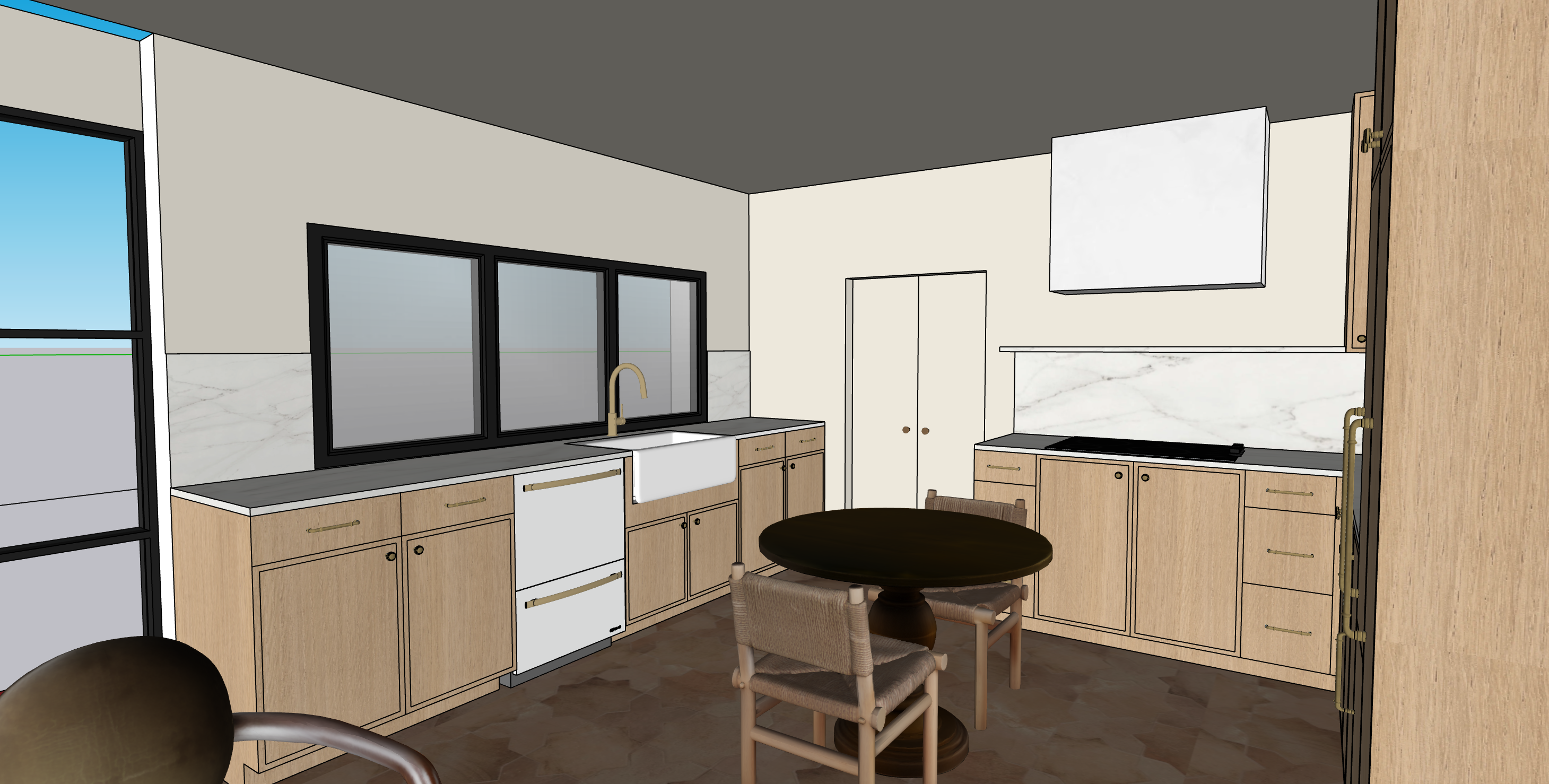 make view from outside the window of a luxurious backyard