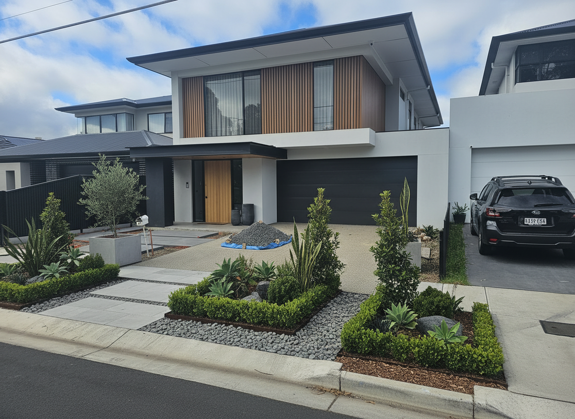 make the image a more photorealistic add realistic garden landscape in distance without water outside behind the windows however preserve the details especially the lettering