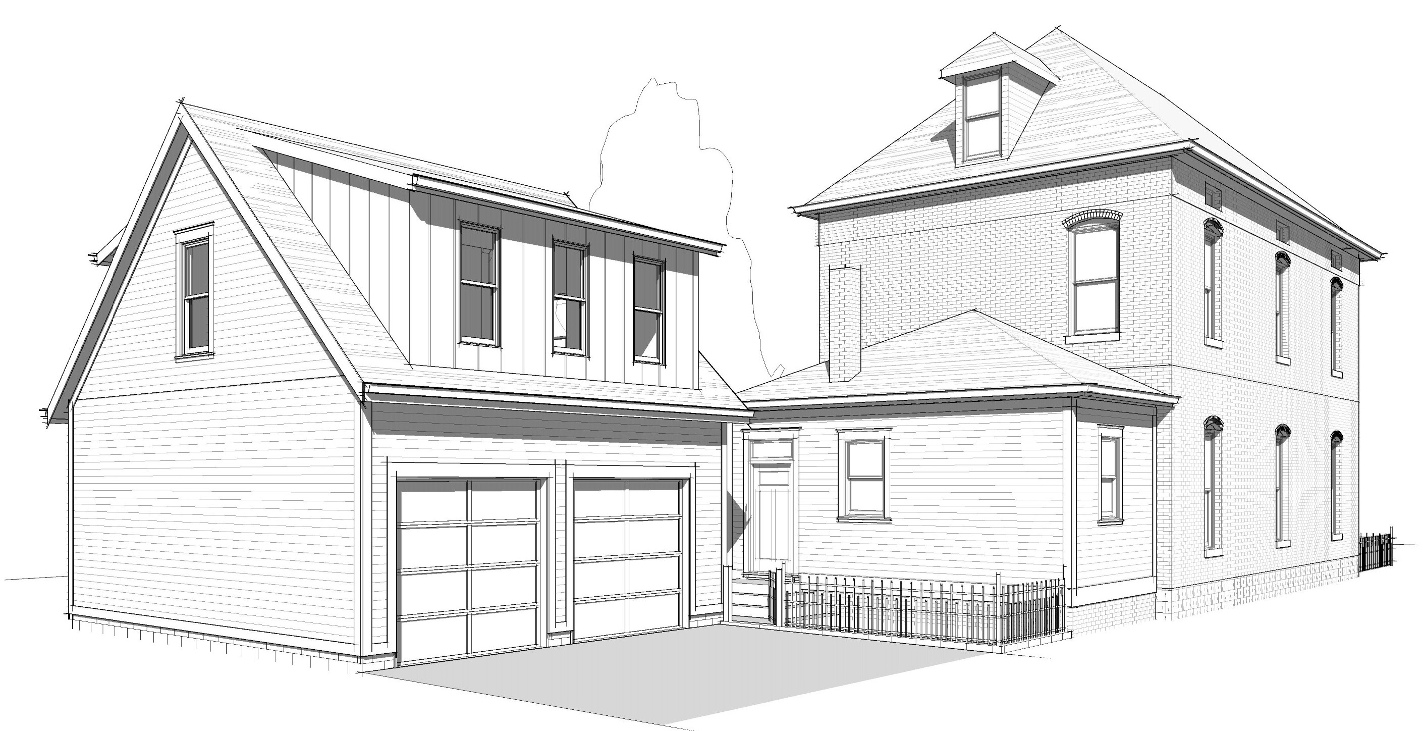 the main house is in a historic neighborhood the garage is a proposed new structure keep horizonatl siding on garage and existing rear house addition dormers im thinking standing seam metal siding