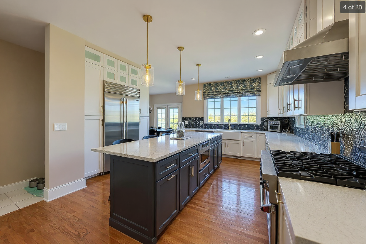 make wall and ceiling paint light flesh tone add a roman shade in the window with fabric similar to designer s guild tapestry flower platinum add lantern pendants over kitchen island make ceiling paint light flesh tone
