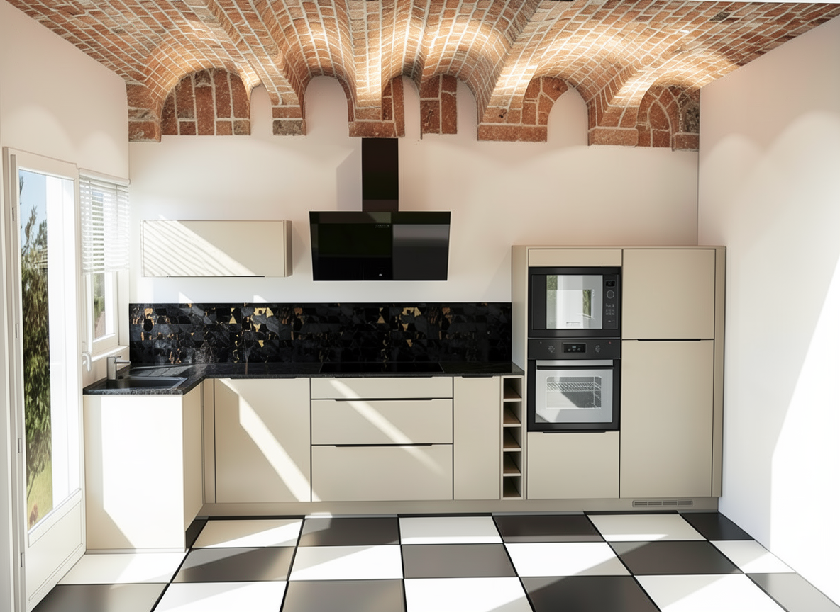 fait moi un rendu ultra photo r aliste de cette perspective cuisine conserve les proportions des meubles ne modifie absolument pas l implantation ou les dimensions des meubles tu peux y ajouter par contre un peu de d co mais conserve l originale garde une proportion paysage mais en respectant les dimensions initiales des meubles dans l image que je te fournis le rendu doit tre tr s r aliste et avec norm ment de d tails respecte par contre bien l implantation de la cuisine et ne rajoute rien