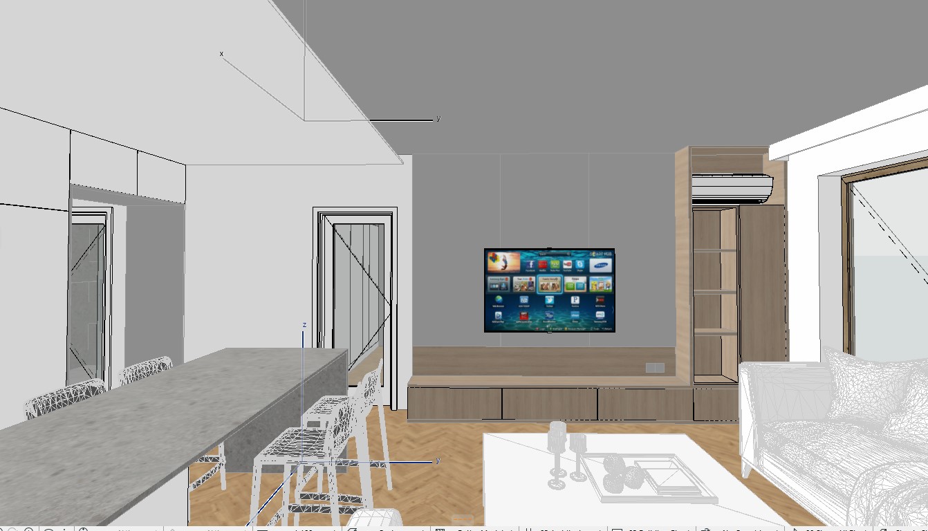 realistic render white countertop to kitchen led lights to right side to ceeling