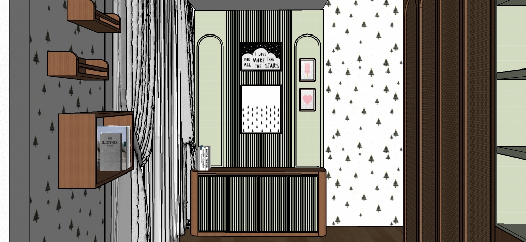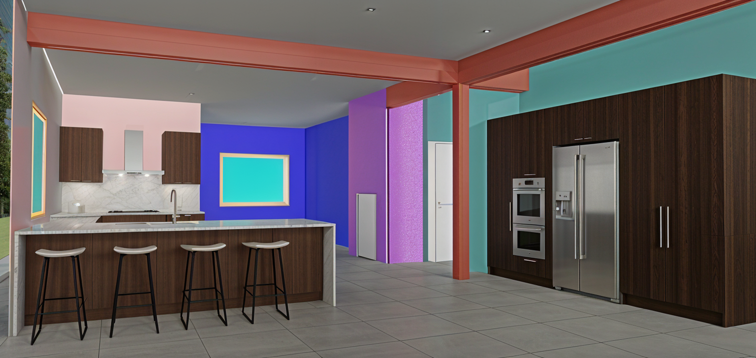 create an ultra realistic image without changing any of the structure shape design or materials don t resize the jpeg add indirect light and decoration on the wall