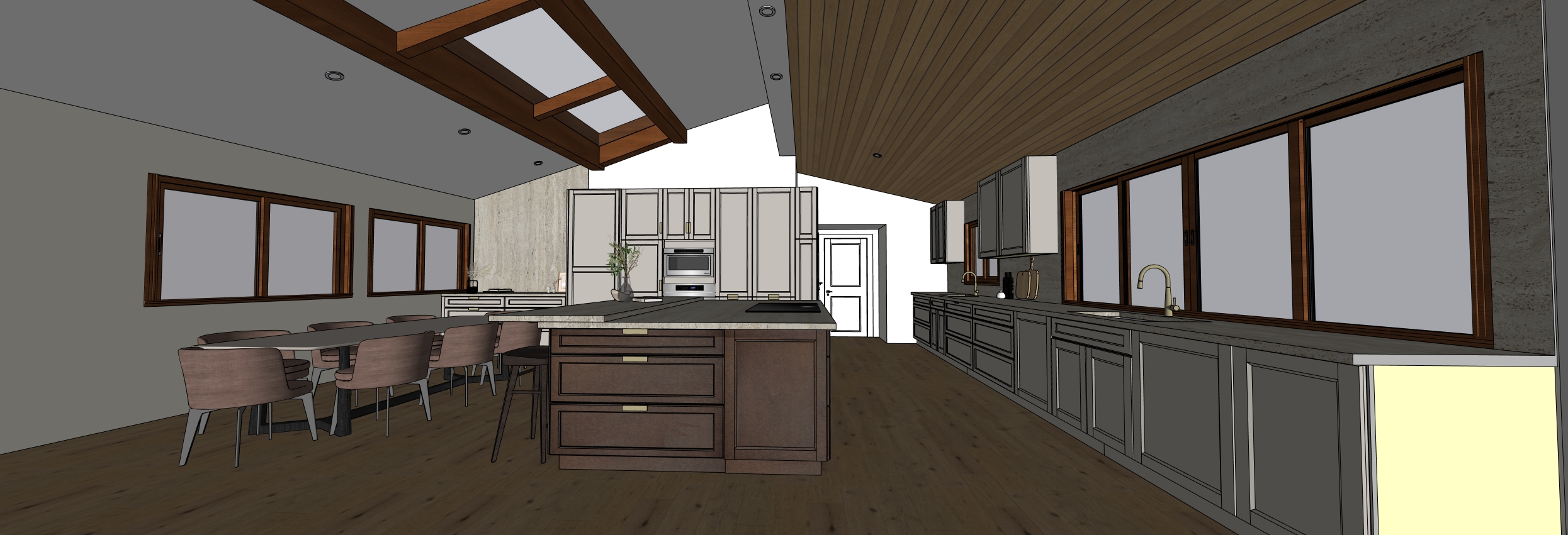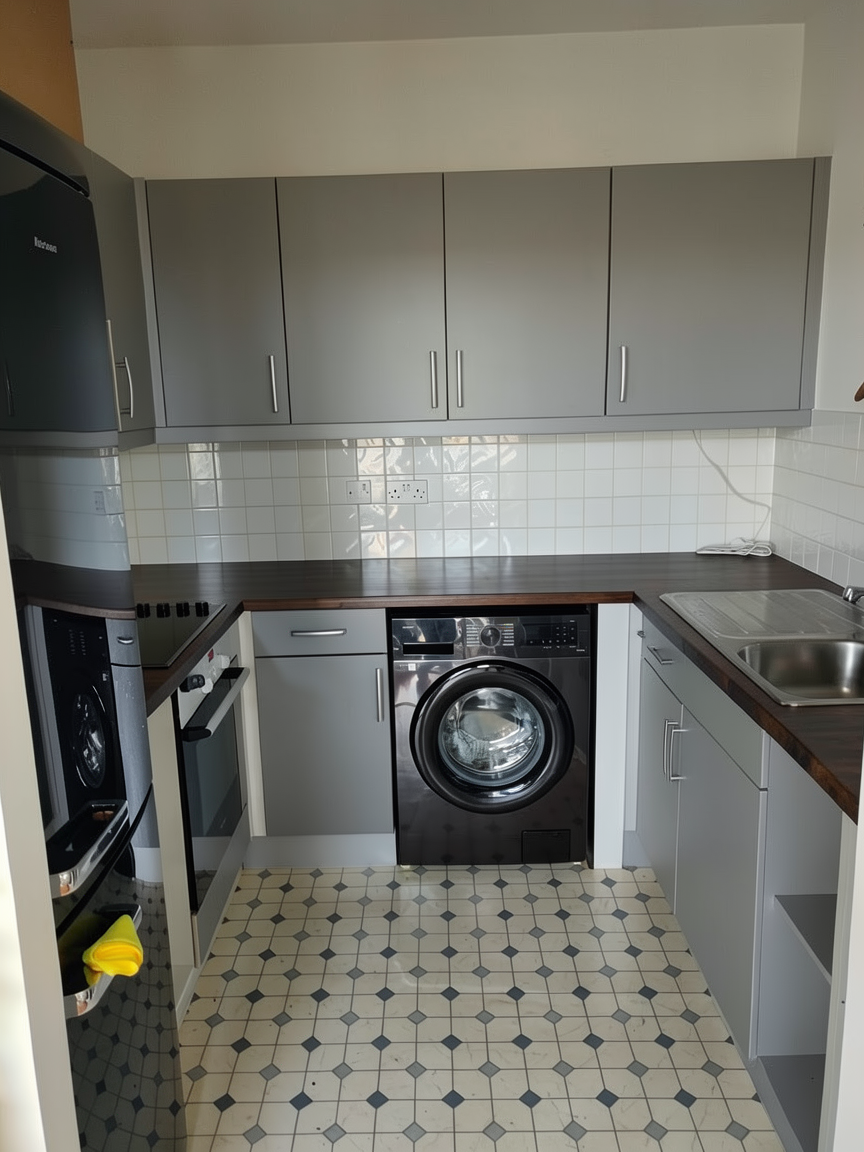 add flush pull handles on the cabinets and make the render realistic and make it bright add white zellige backsplash tile