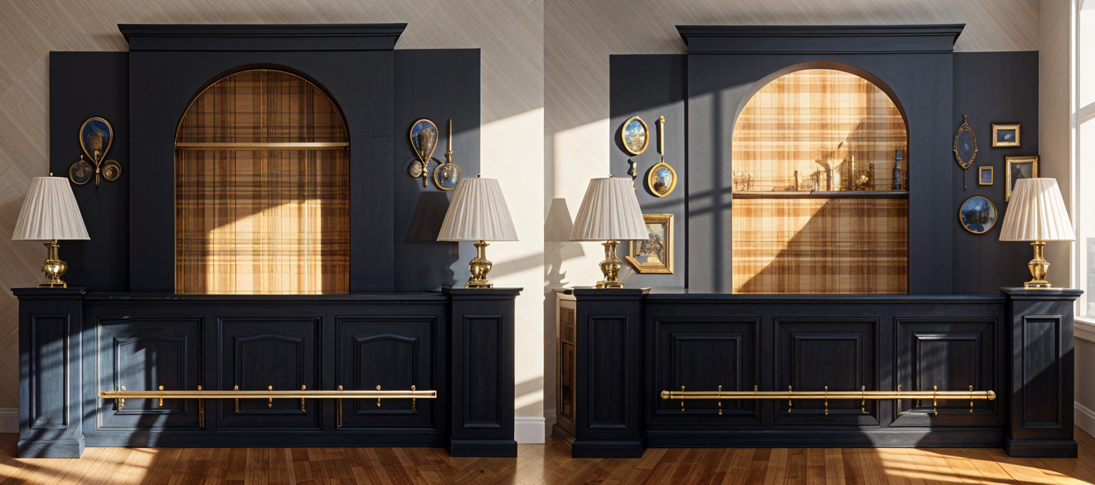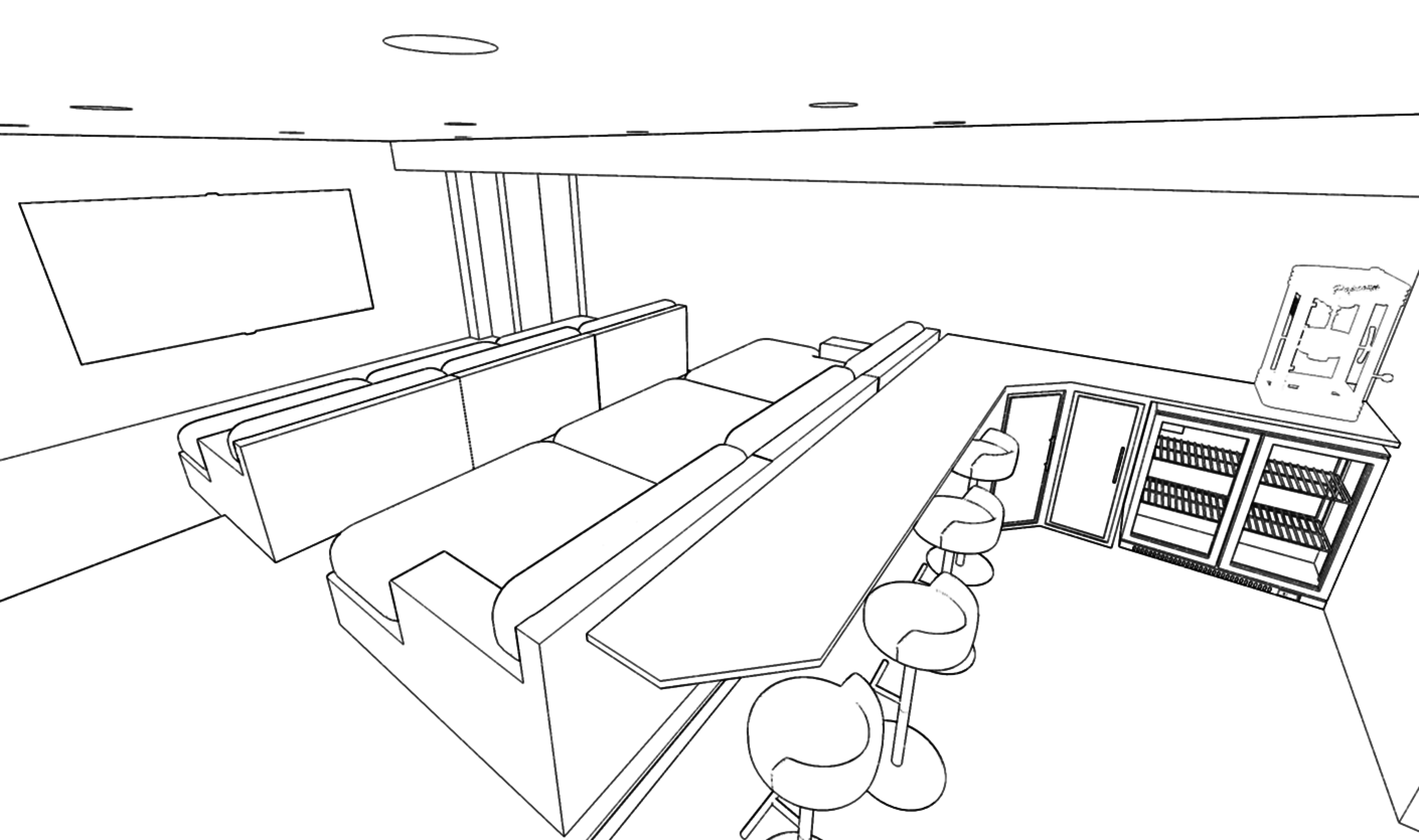immersive home theater lounge bathed in warm amber tones walls and ceiling finished in rich glossy terracotta lacquer plush tiered seating with wide modular cushions upholstered in patterned orange fabric deep burnt orange and rust accent pillows low ambient wall sconces casting soft light cozy carpeted floor in matching tone large projection screen two oversized knit poufs on floor luxurious and enveloping atmosphere cinematic lighting mid century retro modern palette intimate proportions seamless acoustic panel integration high end minimalist audio setup mood of warmth and cocooning comfort photographed in architectural lighting style cinematic interior photography ultra realistic render barter made from rich woodgrain wood