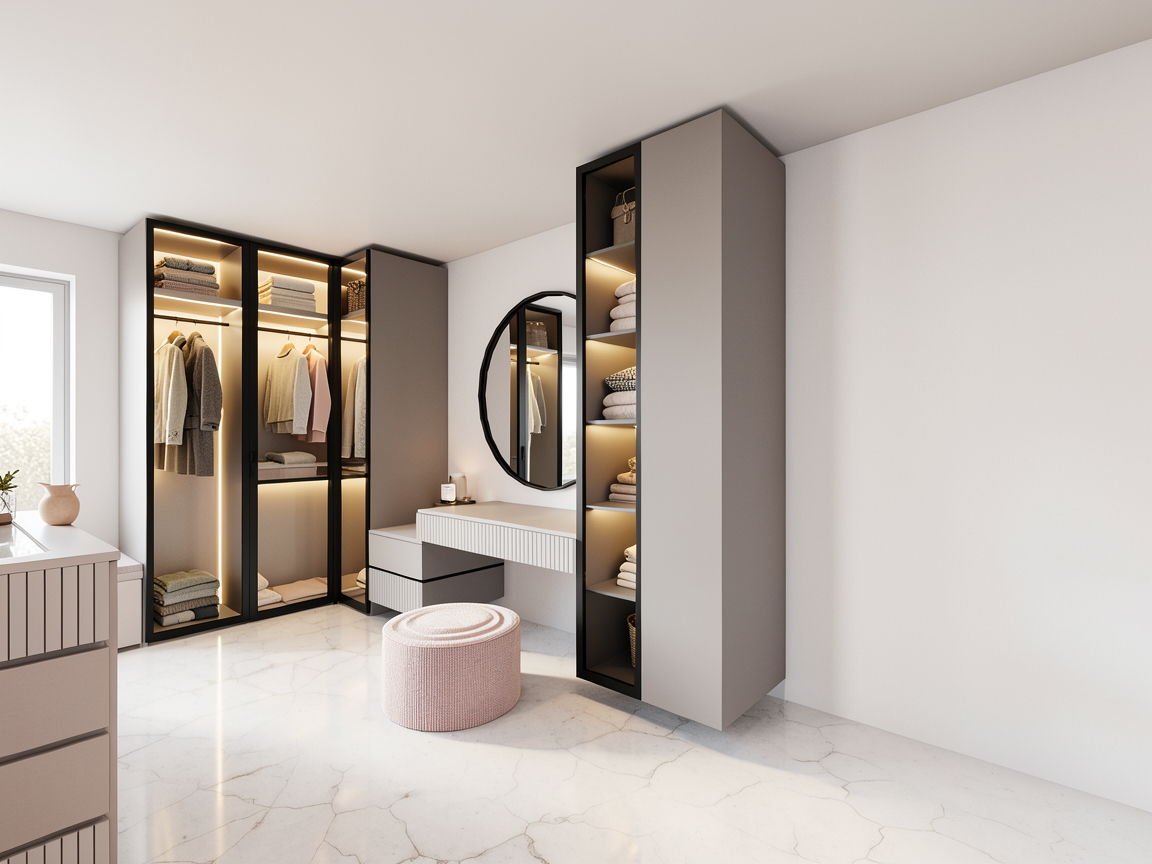 modern luxury walk in closet accessories soft colors no wood keep original nodes black frames