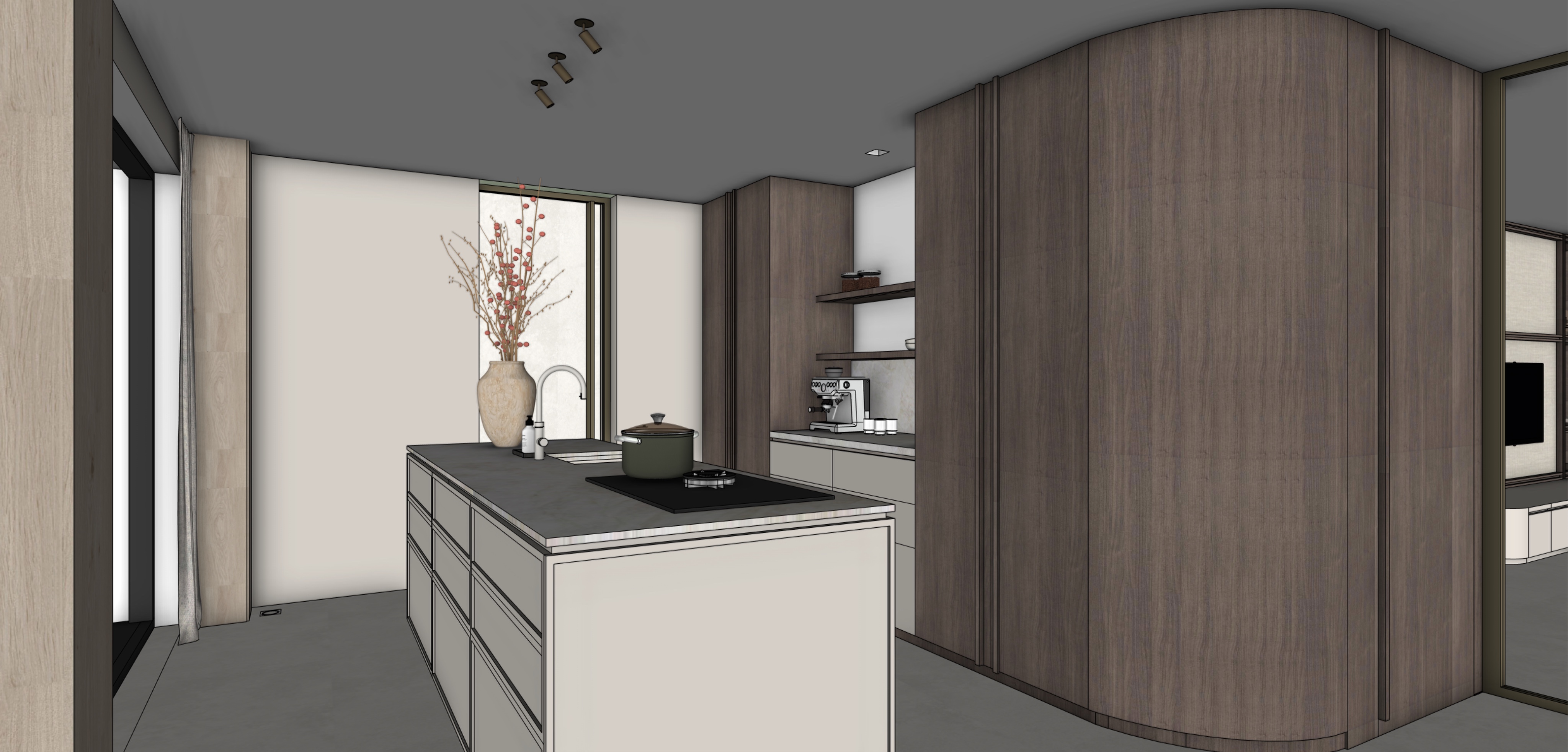 beige walls floor en ceiling make it light en warm keuken blad taj mehal