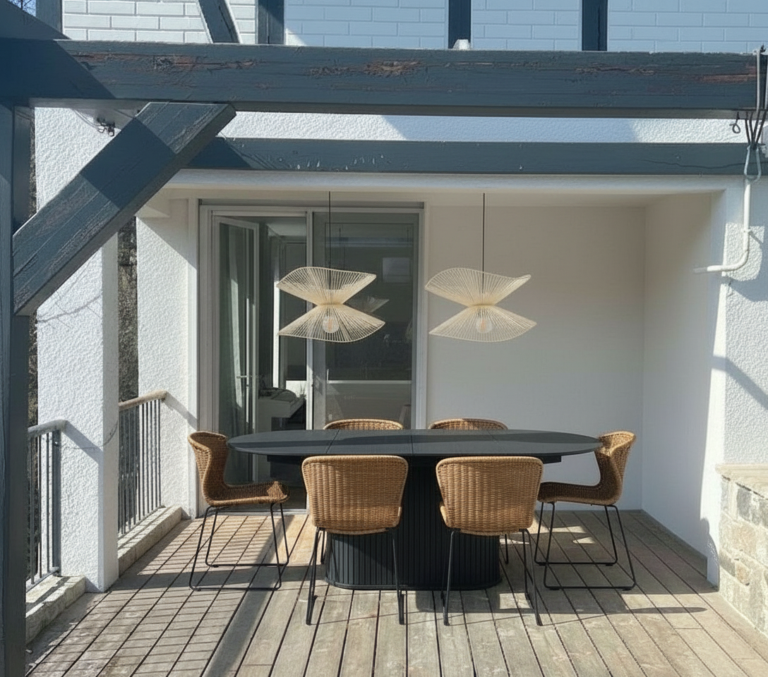 add a sliding door to enclose the terrace the table is behind the sliding door
