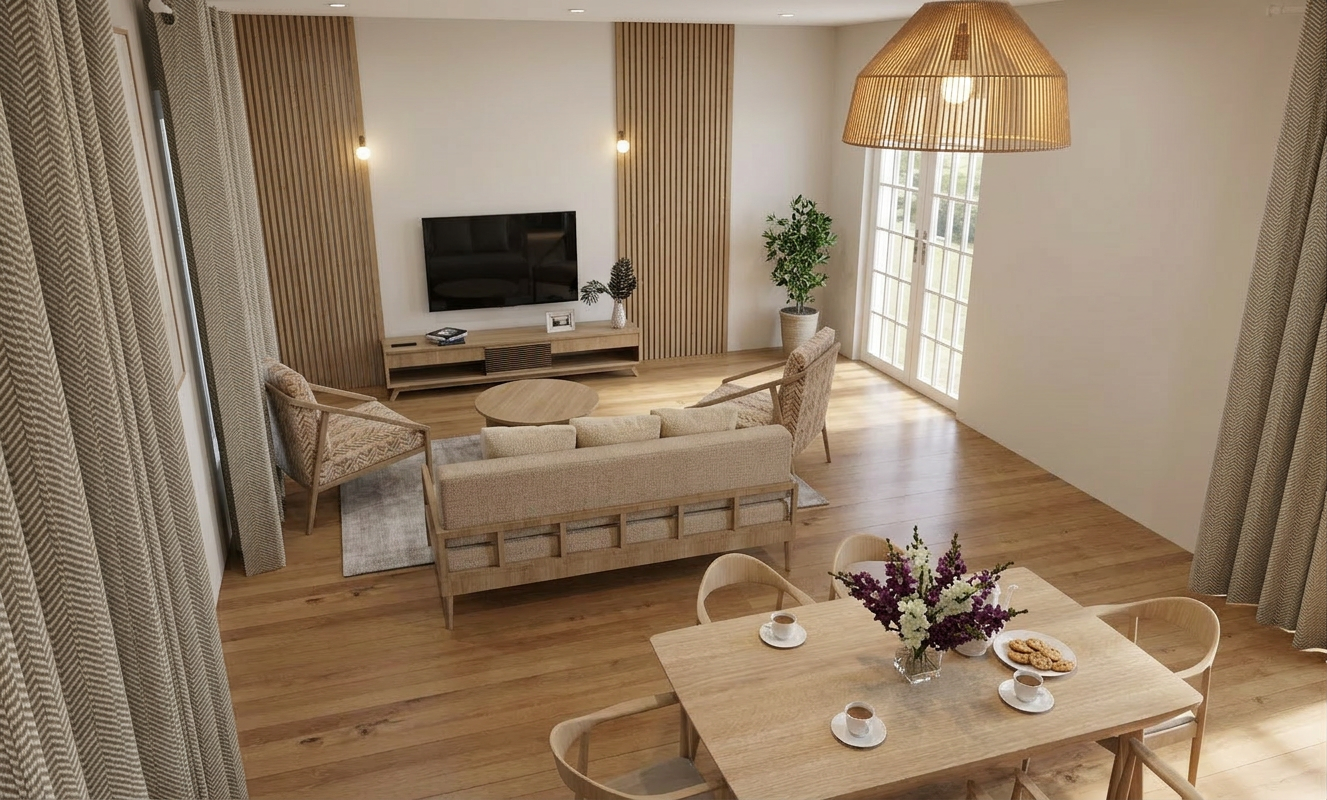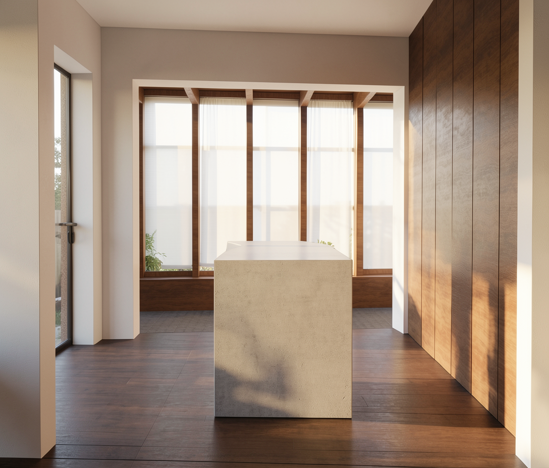 ultra realistic architectura visualization do not modify the architecture geometry scale or layout only enhance materials liaghting and realism improve global ilumination raytraced reflections soft shadows and natural daylight