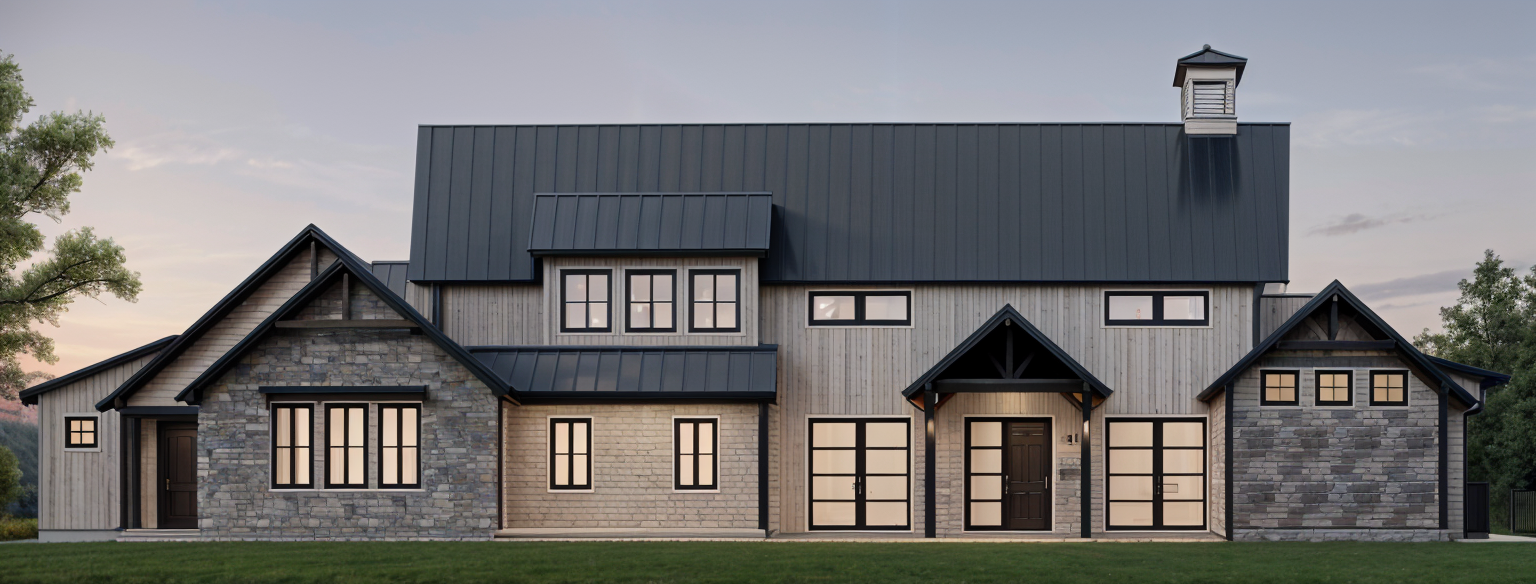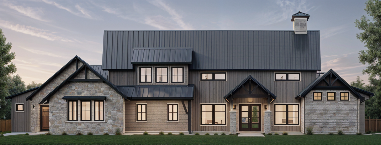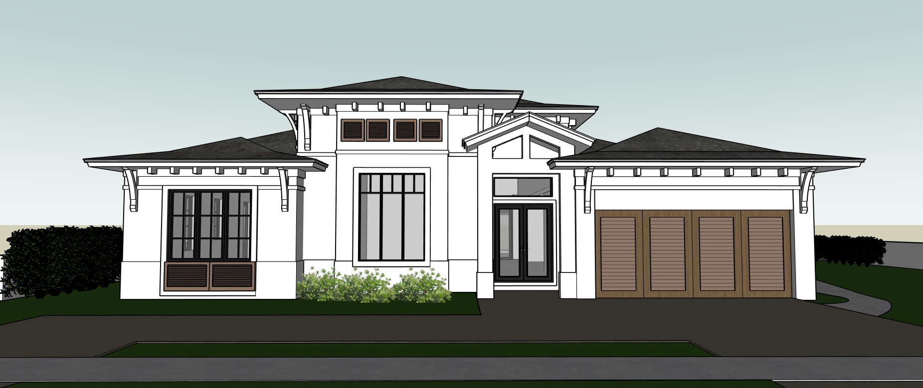 modern exterior shot modern house with crisp clean lines painted in pristine white with dark charcoal roofing and natural wooden shutters the windows are sleek and framed in black a lush vibrant green lawn surrounds the house the driveway and walkway are a rich slate gray bushes with lively green tones and tiny white flowers line the facade the sky is a gentle gradient of soft blue evoking a peaceful serene atmosphere architecture