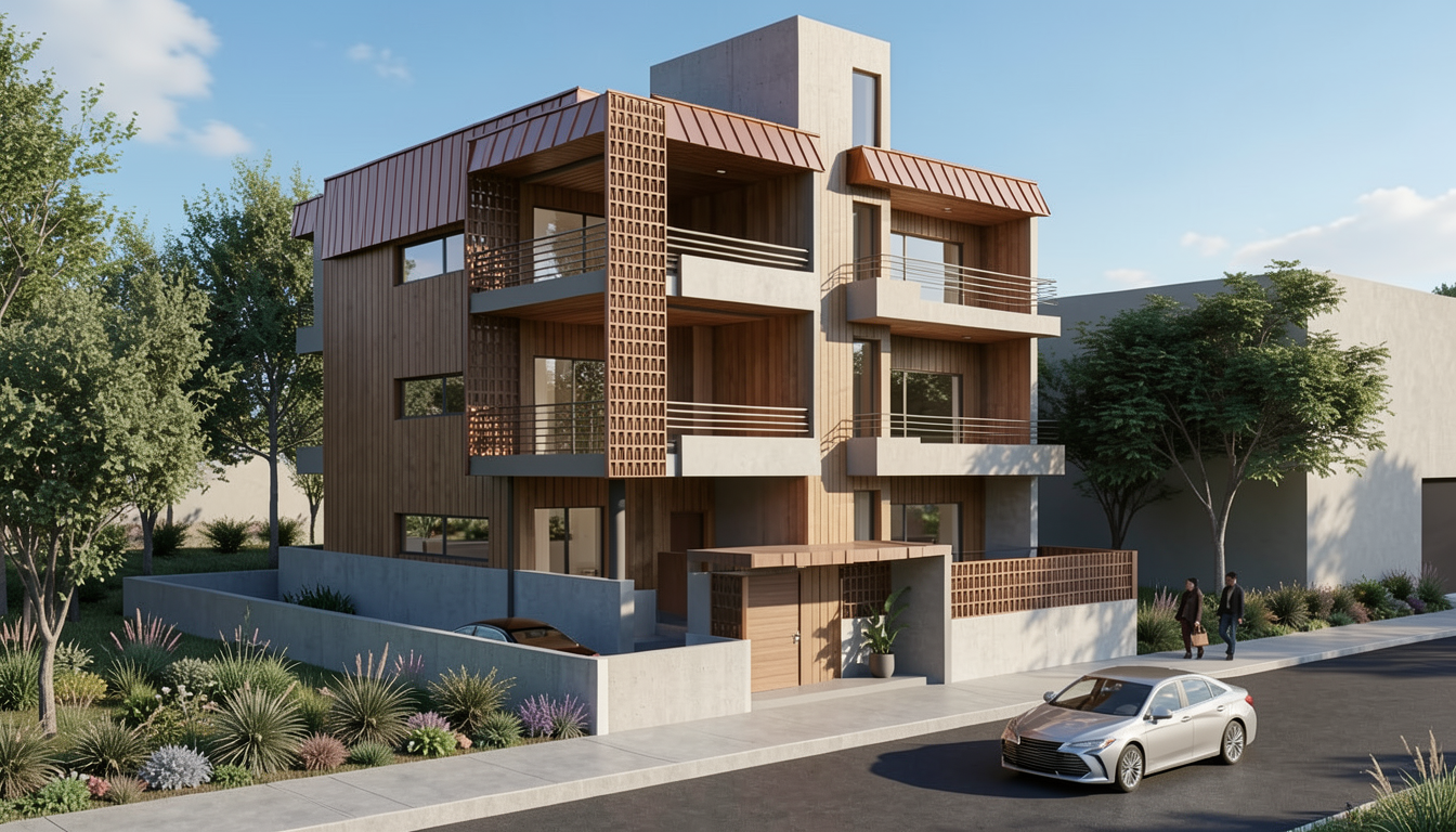 render a photorealistic interior view of a restaurant focusing on wall nr 1 which contains three vaulted niches each niche s back wall is clad in black mirror between the frame of each niche and the black mirror there are two 3d printed vaulted orange panels the wall itself wall nr 1 is clad in 3d printed beige panels on the left side between the left corner and the first niche there is a series of 3d printed beige rifled elements on the right side between the right corner and the last niche there is a series of 3d printed beige rifled elements the left wall wall nr 2 is clad in 3d printed beige panels and contains an orange door matching the 3d printed textures the right wall wall nr 3 is clad in 3d printed orange panels and also contains an orange door matching the 3d printed textures the ceiling is black and the floor is covered with a large scale mosaic the restaurant has six tables with chrome legs and black marble tops each surrounded by four chairs with wooden bodies and light blue upholstery enhance the texture of all existing elements walls panels mirrors furniture mosaic for more realism and material richness add concealed warm led lighting along the contour of the ceiling and between the orange panels and black mirrors of each vaulted niche maintain all original proportions positions scale materials stereotomy and colors of all elements enhance the overall atmosphere for a warm inviting and sophisticated restaurant interior