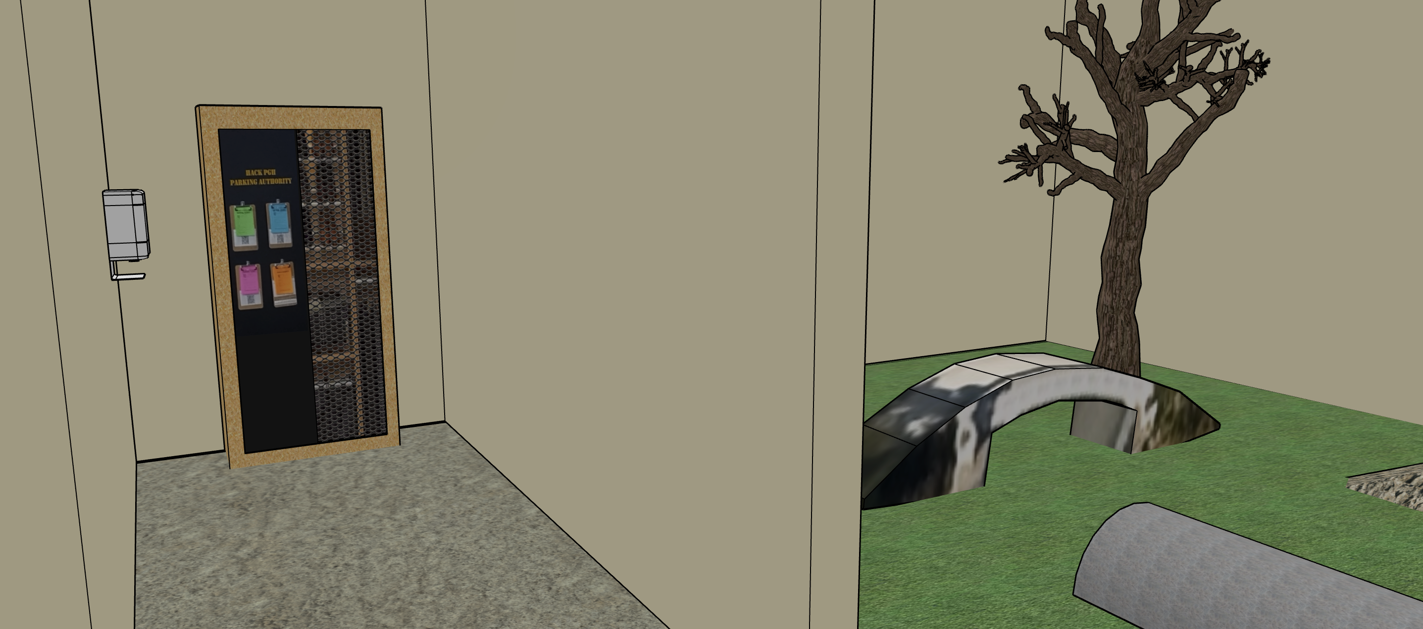 looking into vestibule area with a healthcare ppe cabinet the room on the right has a surface mounted sliding door system