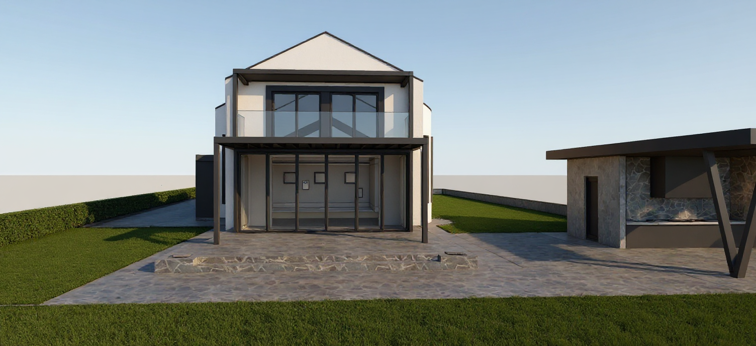 modern walk in closet and bathroom interior render minimalist design with neutral tones light wood finishes and matte black accents open wardrobe with drawers on the left floating vanity with round vessel sink and large mirror in the center with matte white paint on the wall behind the mirror and glass enclosed shower with marble wall up to the shower glass the floor is a seamless light gray porcelain tile natural lighting from ceiling skylight soft reflections realistic shadows high quality materials and a clean architectural visualization style