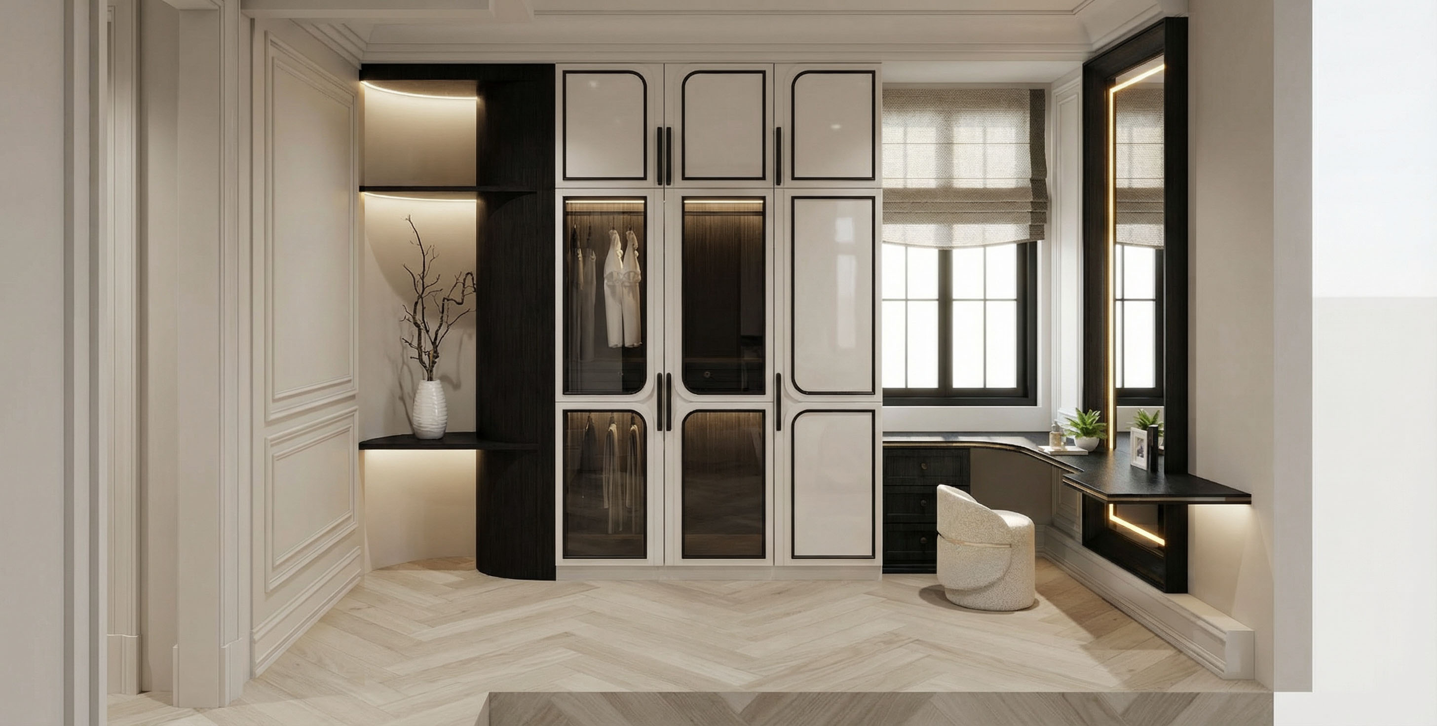 ubah warna lantai kayu krim gelap dan buat warna lemari doof bukan mengkilap