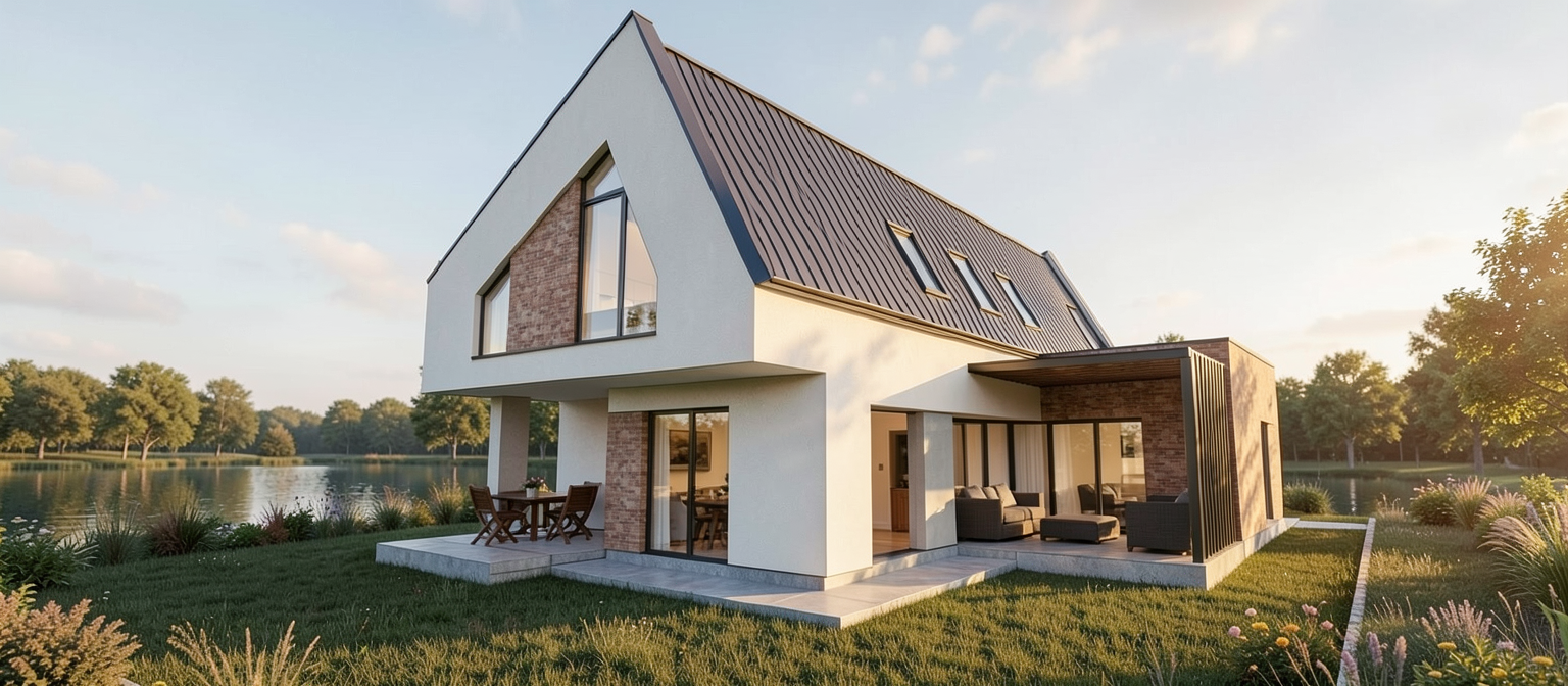 convert this floor plan into a architectural isometric 3d view of a full house show the space from an elevated angle with furniture walls and details visible please mirror this open first floor floorplan take note of garage placement remove all text home is placed on a narrow waterfront in new york model total 600 feet deep the home is 200 deep with a pool about 200 feet from the home the water is another 200 from the pool use the same furniture as shows on the plan do not change the orientation of the floorplan