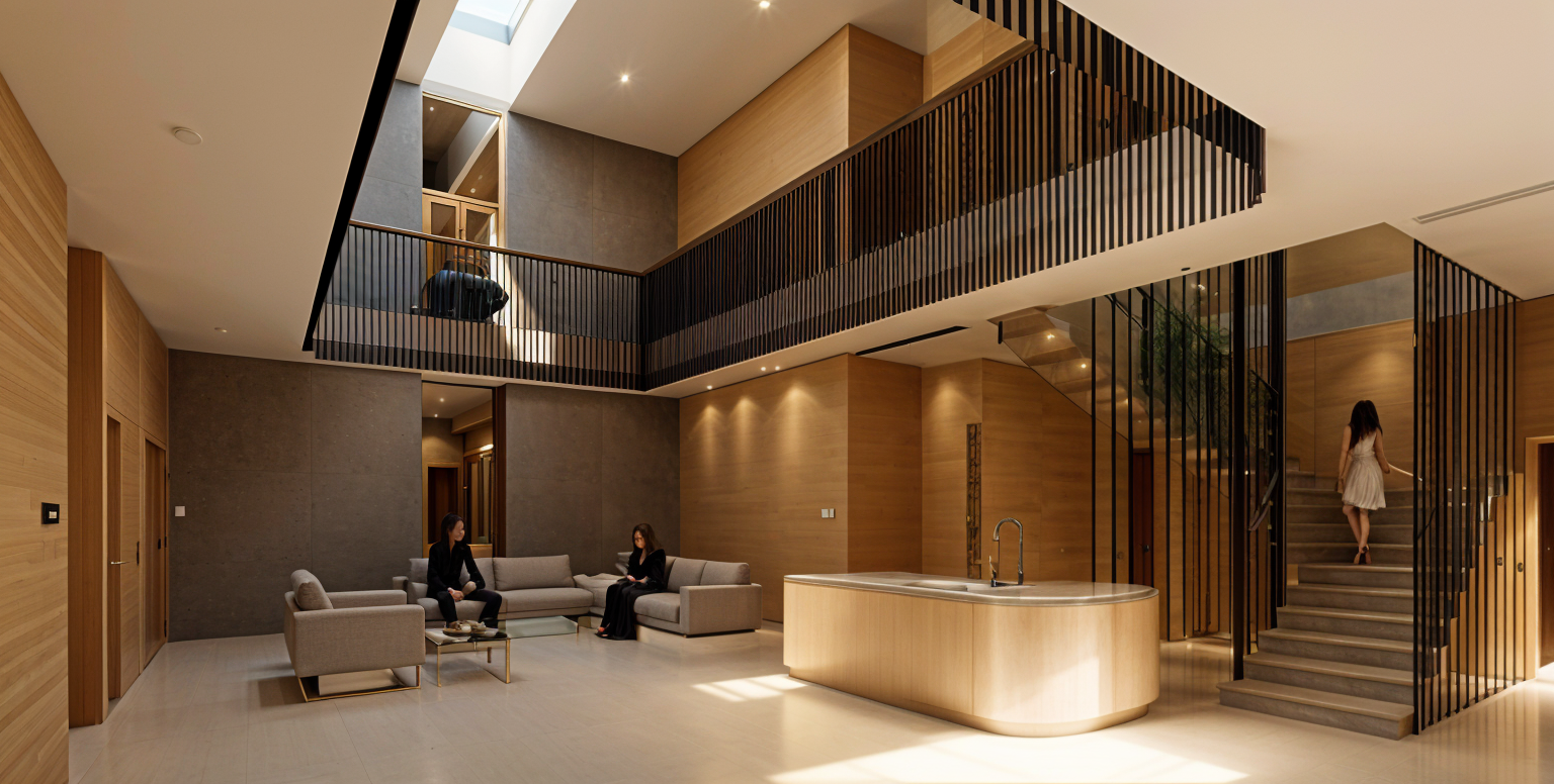 hyperrealistic cinematic view black tesla model 3 in front of the garage trees in the background grass and plants in the front side of the house glass mirroring the neighborhood