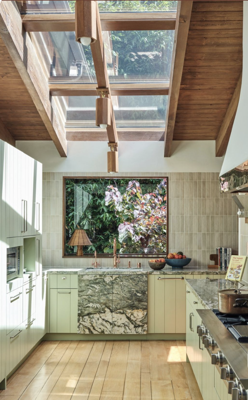 exterior shot make the walls a vertical textured plaster show a garden outside the window with romantic dappled light coming in