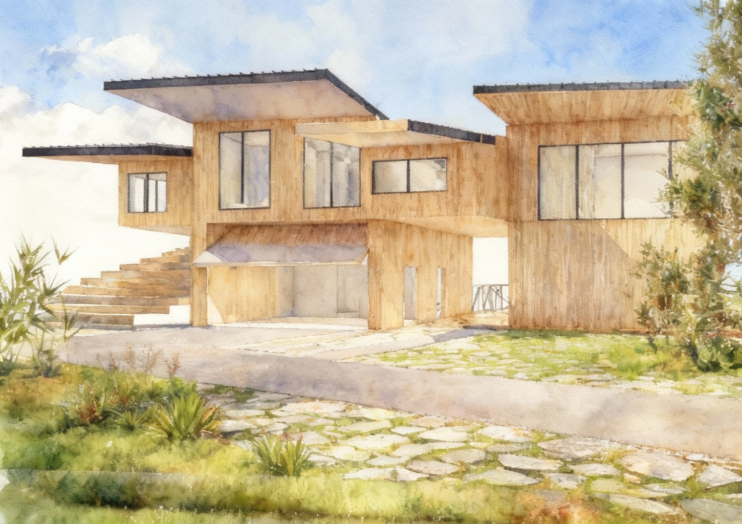 modernist exterior shot render fades to white architecture