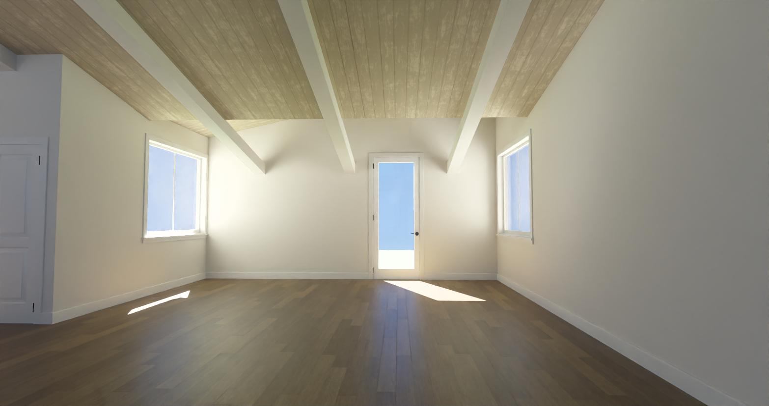 create proper ceiling in entrance aligning with angled make beams end at ceiling they are on