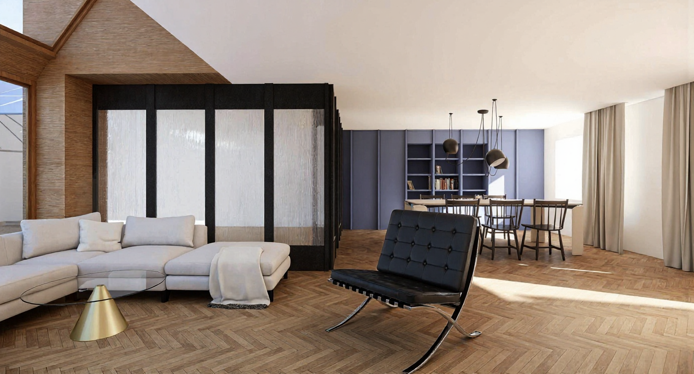 replace the dining table with the sofa and the sofa with the dining table