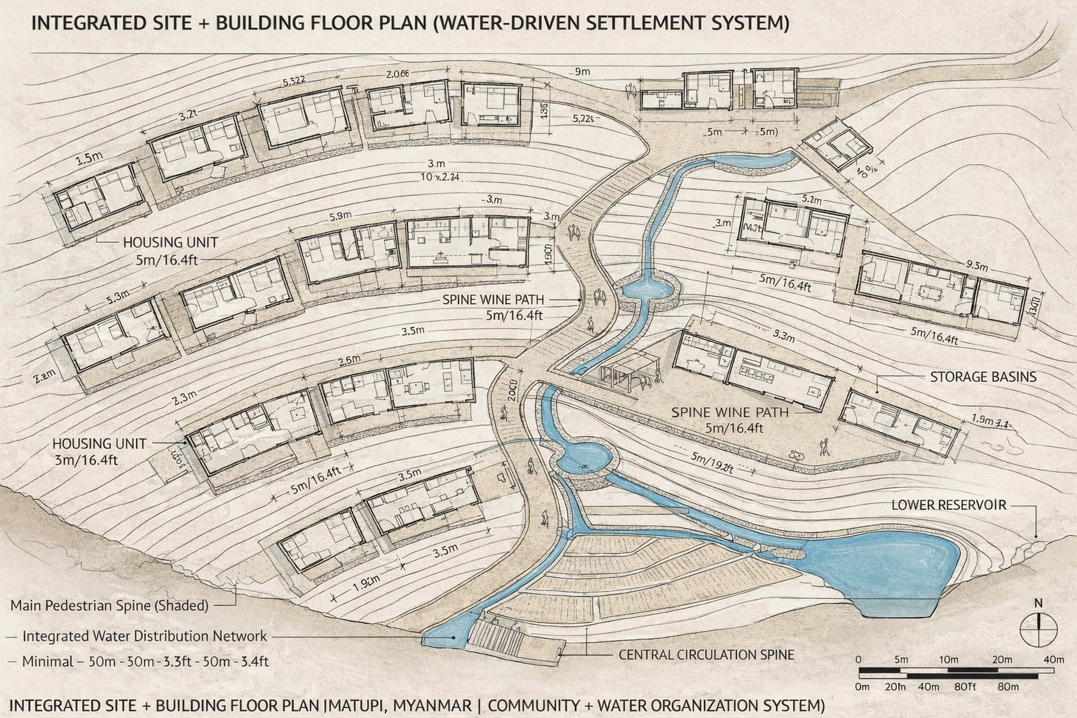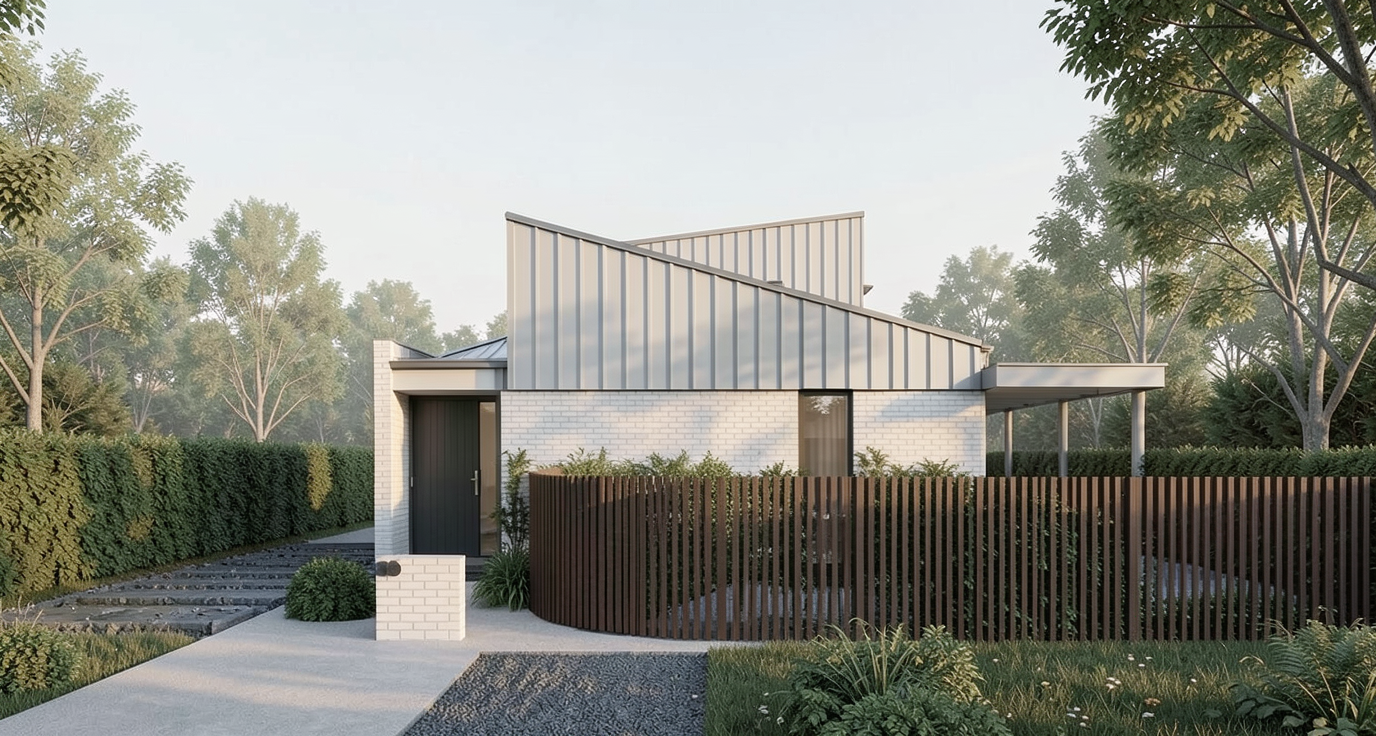 modernist exterior shot generate floor with clear lines and terrain and conture architecture