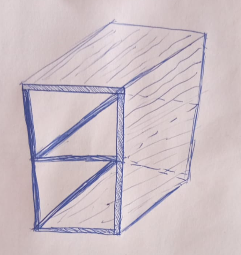 render this table keep the colours the top should be osb the legs and bracing should be solid pine painted yellow the background should be a plain background architecture