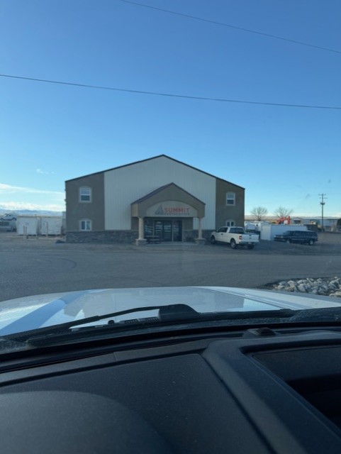 i want this building to have a parapet to hide the high gable that top 6 feet should then be faced in a metal black horizontal panel often time referred to as the 6 2 panel the bottom should then have a nice vertical panel in a light grey metal i would like to also change the entry way gable to remove the large round columns and replace with large wood post 12 x 12 and that can be framed to hide the gable also in a similar design lets start there and see what that looks like