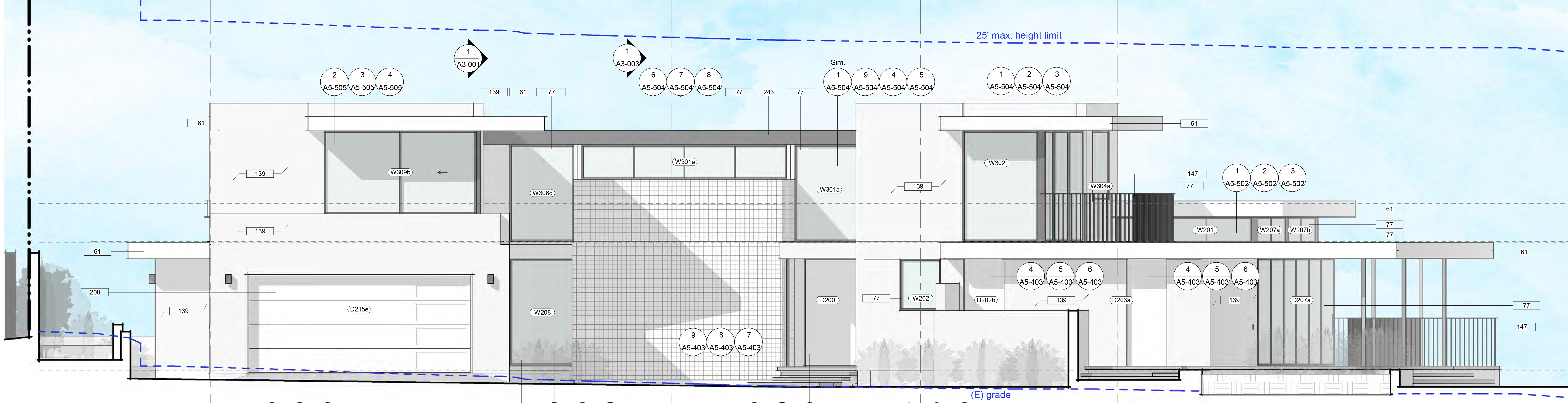 recreate the elevation in the style of the reference image provide green background as shown but keep the building in simple black and white do not change any geometry or architectural elements