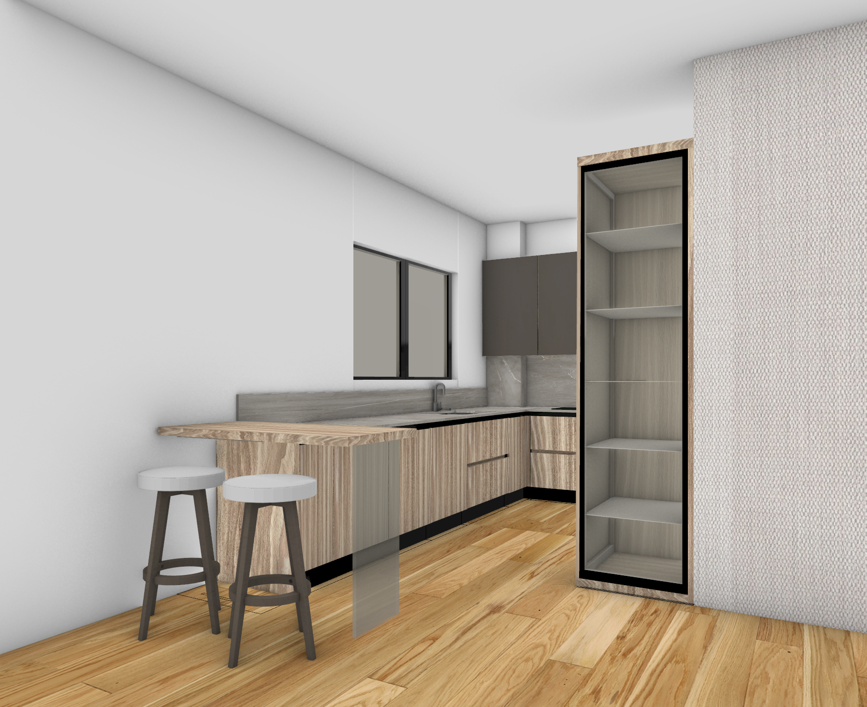 ultra photorealistic interior render of a contemporary luxury kitchen do not change any materials finishes geometry or architectural details from the original model preserve exactly all textures colors proportions and surfaces as modeled