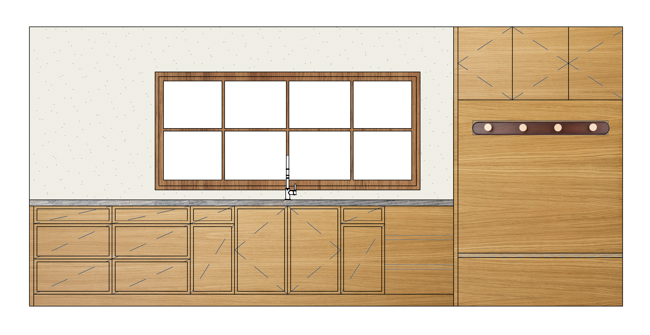 make this interior elevation look realistic wood tone is a light color add a mountain west landscape out of the windows