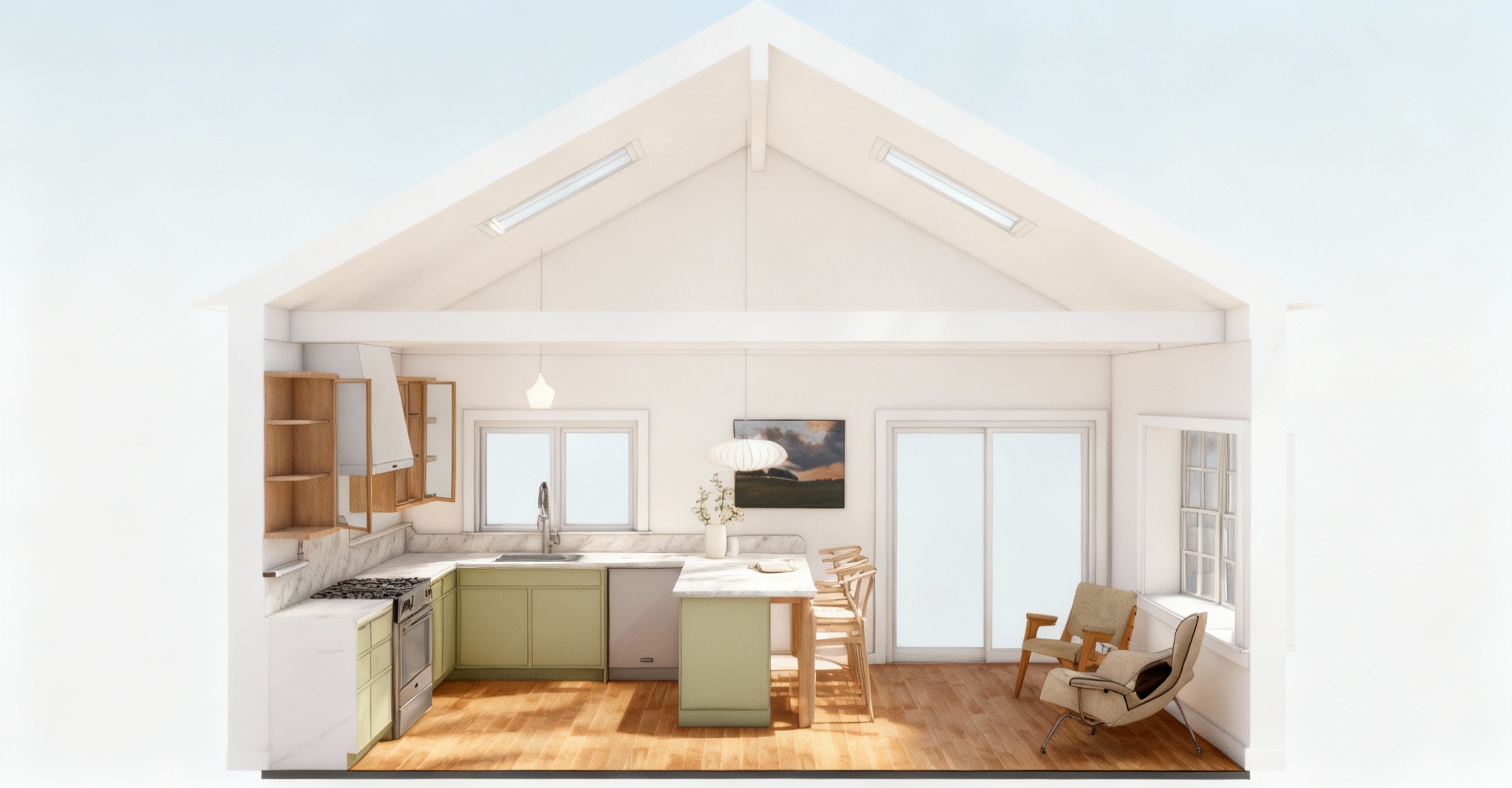 very soft shadows extremely soft contrast keep ceiling white and opening on the left open