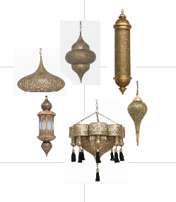 use these lights in a render of a room that is 6m to the ceiling has a window 5m from the ground and 3 5m tall behind the lighting cluster the window has sheer curtains with a moroccan flair over it and the room is set up with moroccan inspired lounge floor cushions and a table the walls and ceiling are all rendered in a soft warm natural finish