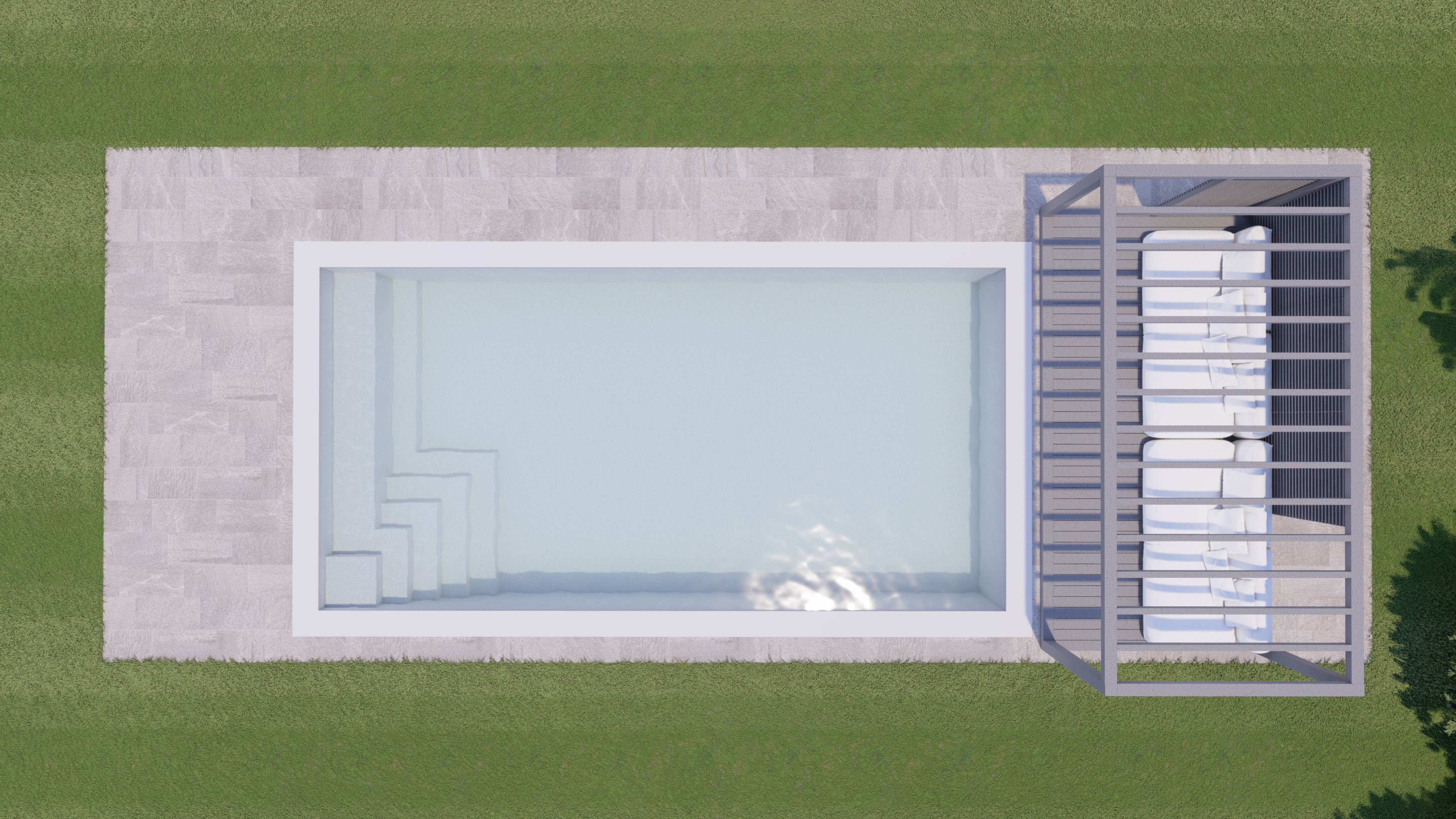 a pool inside a garden and a pergola close to it the grass around the pool is short