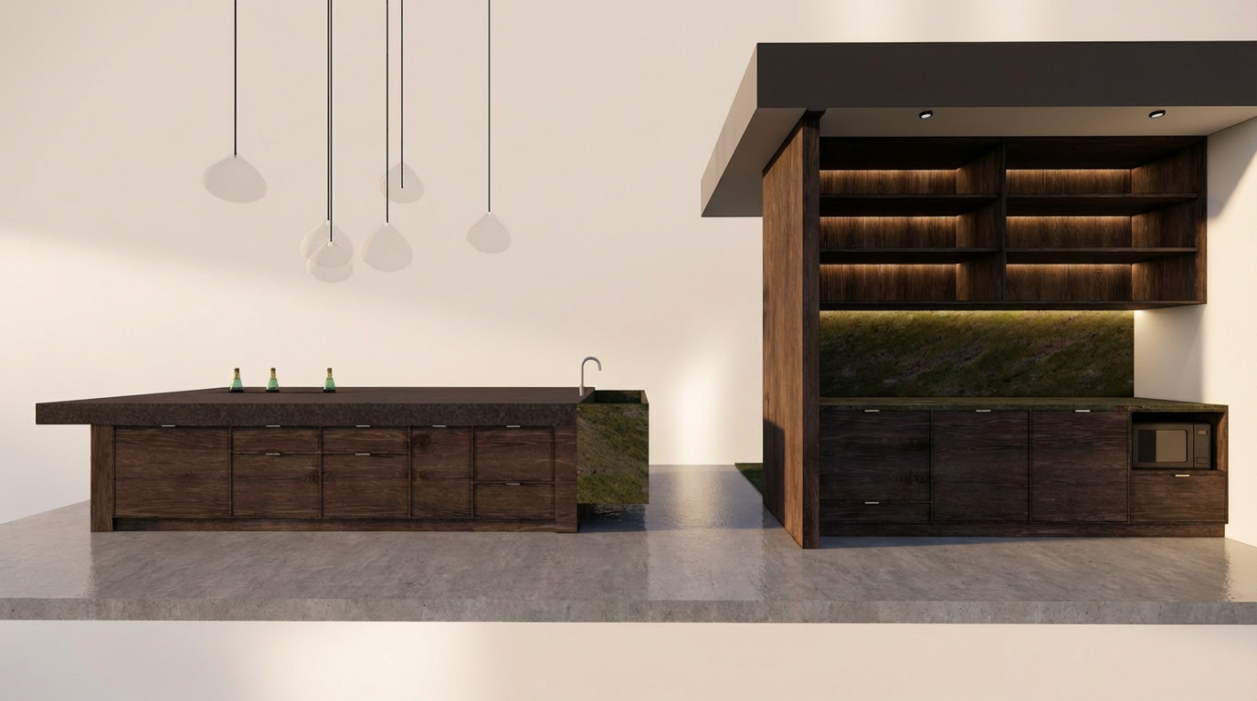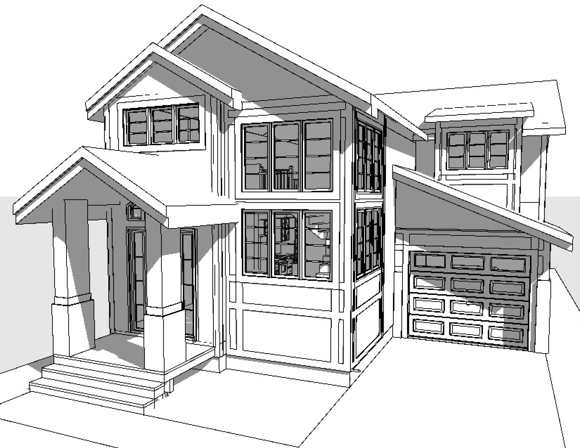 dark roof cream siding black windows black soffits cedar pillars on front porch cedar garage door stone around garage entire wall