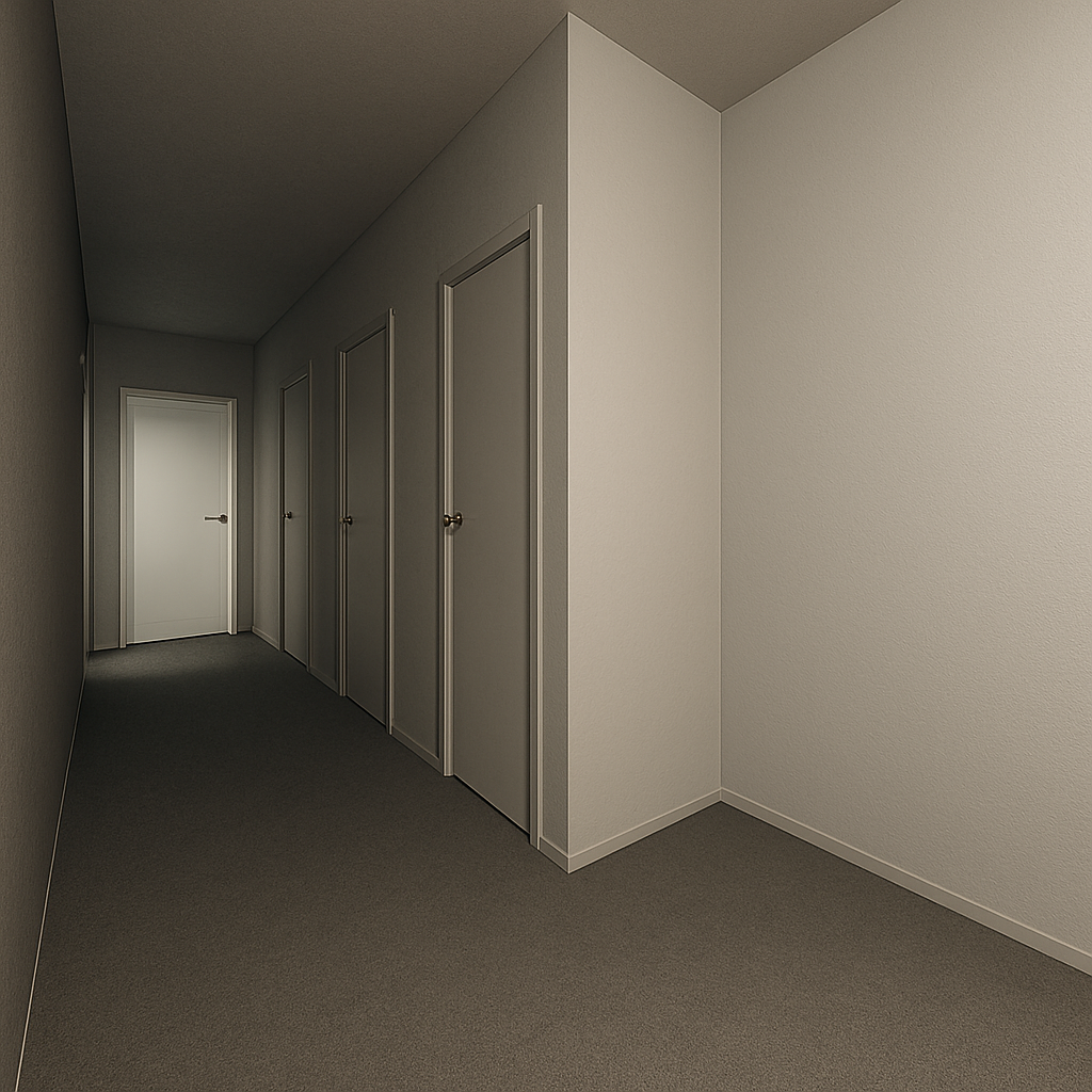 create a stunning urban architectural scene featuring a modern building with large reflective glass windows the building should have a sleek white exterior with chrome accents surround the structure with lush vibrant green palm trees on the right adding a touch of nature the street in front should be a smooth dark asphalt bordered by neatly painted white lines set against a clear blue sky the atmosphere is bright and inviting with soft warm sunlight illuminating the scene a refelction pond with mirror ball sculpture sits to the right of the entry