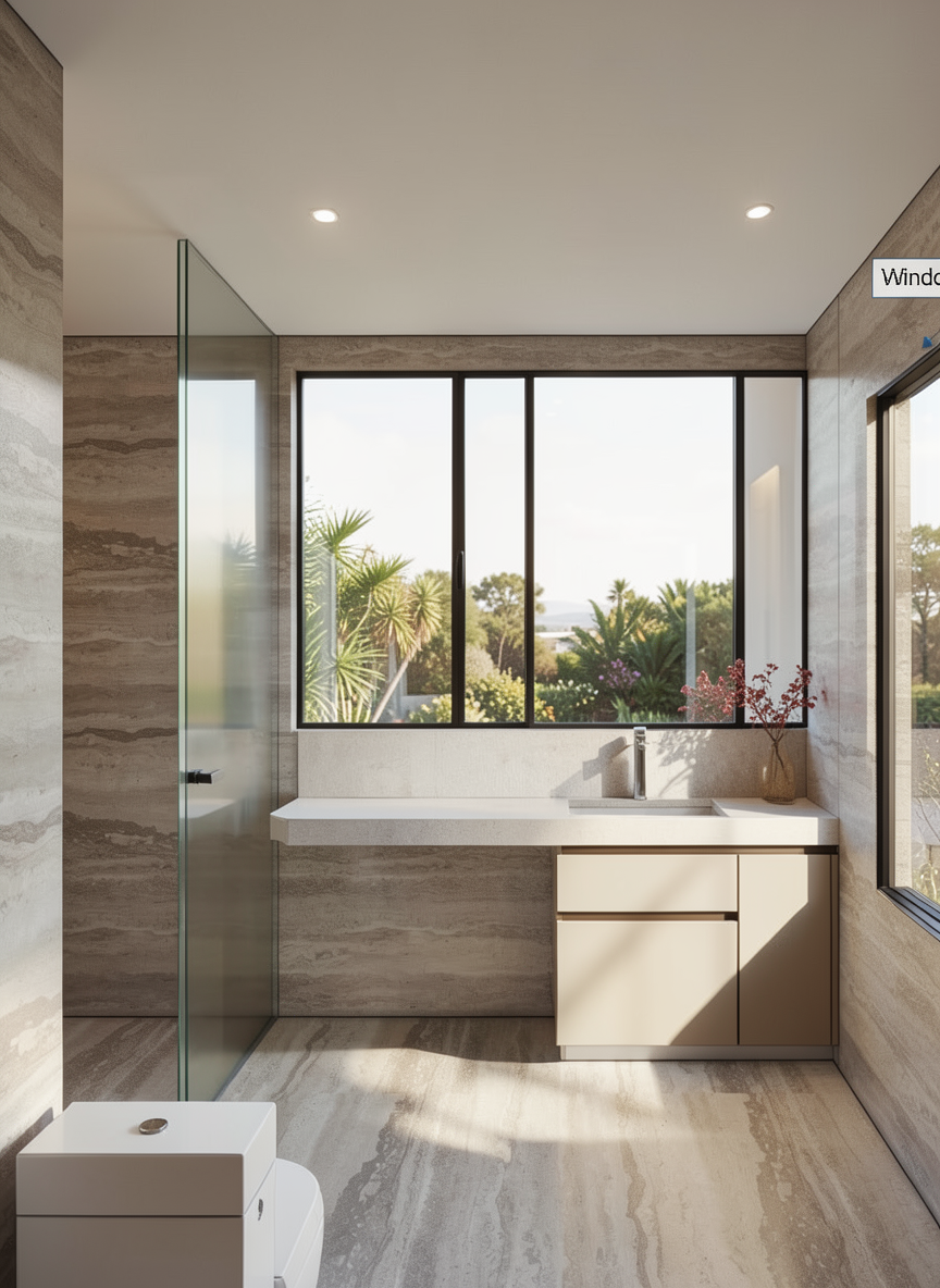 this is a pool bathroom make the walls a coolr wall paper the cabinet a stained black and the floor a cool patterned marble
