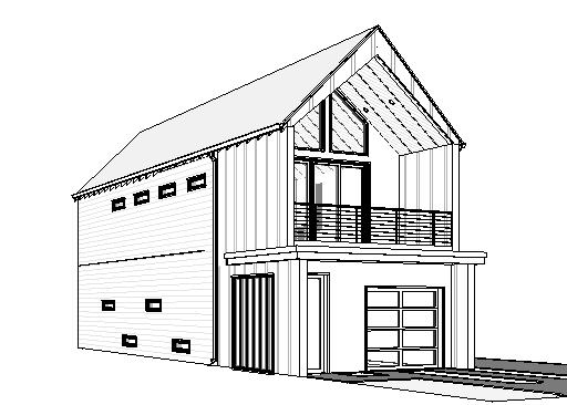 exterior shot sunset background neighborhood landscaping vertical corrugated metal siding and horizontal wood siding