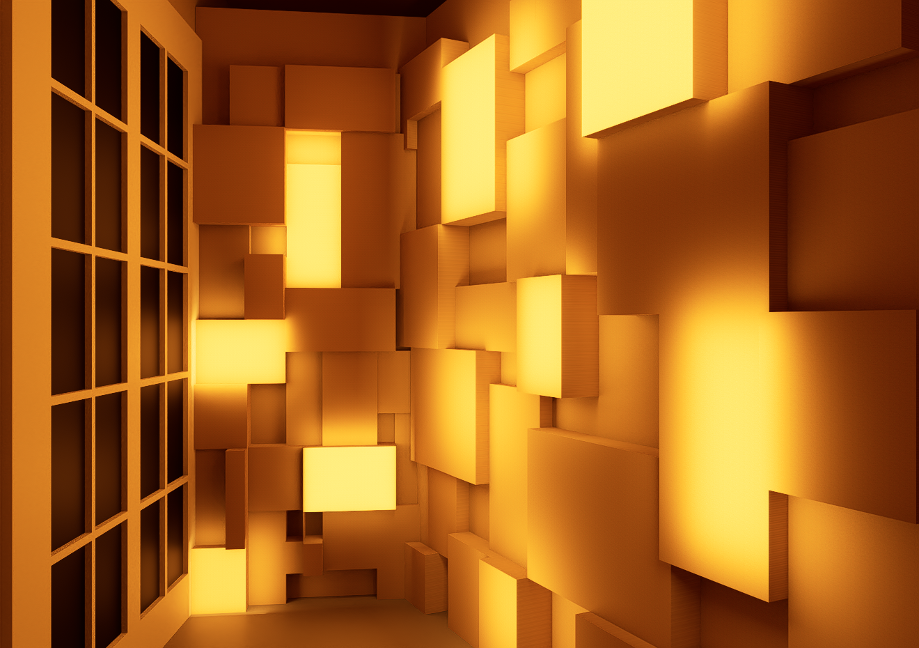 make the blocks on the wall white use herringbone wood flooring create a more realistic visual
