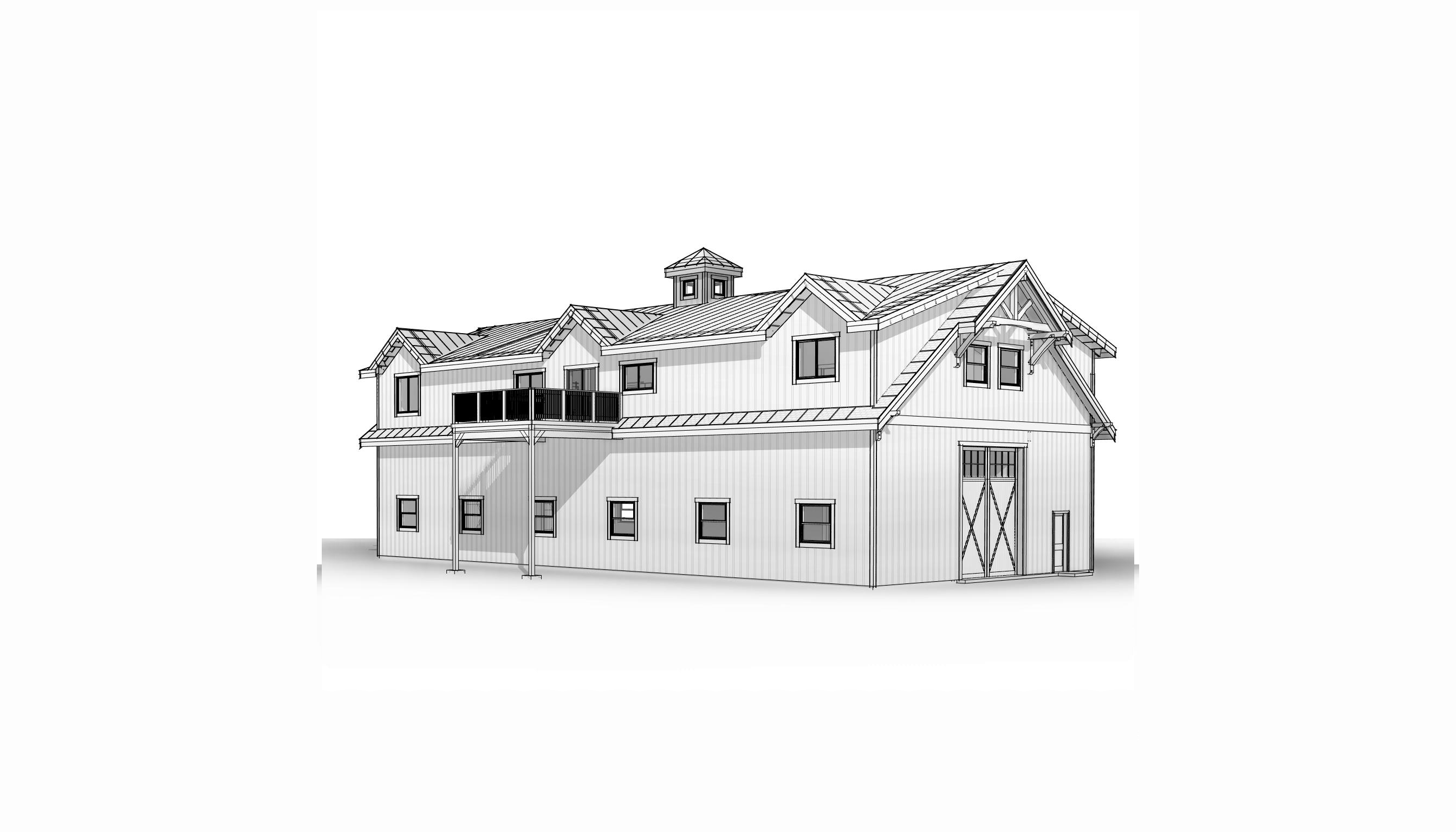 clean architectural exterior rendered in cinematic daylight lighting vertical cedar board batten wood siding with average amount of knots cedar wood barn doors with black trim black metal standing seam roof grass foreground early spring visible tall snow capped mountains in the distant background lush green and yellow rolling hills northern california landscape glass reflections on the windows natural wood textures high fidelity photorealistic visualization crisp shadow falloff refined fa ade geometry richly detailed grain patterns soft atmospheric depth calm minimal landscaping premium architectural photography mood ultra clean composition and materials no grids in windows gable end with truss and roof all meet at the same point