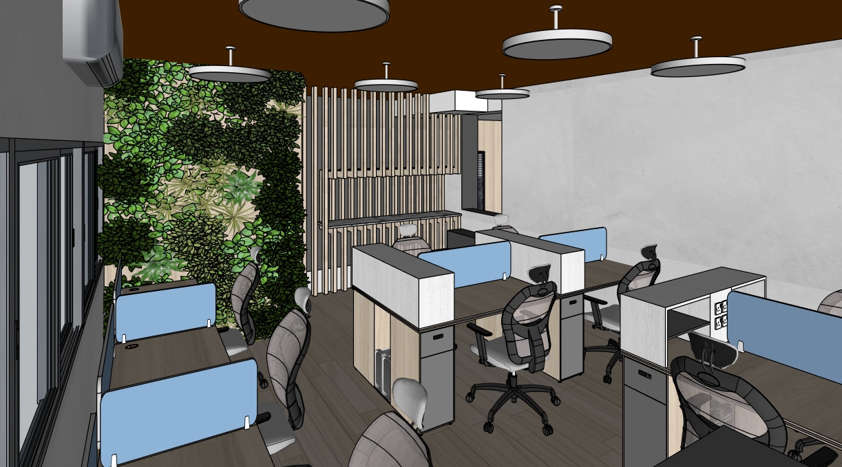 another view of the office area make it as realistic as possible add light strip under the shelve area the the stripe bar