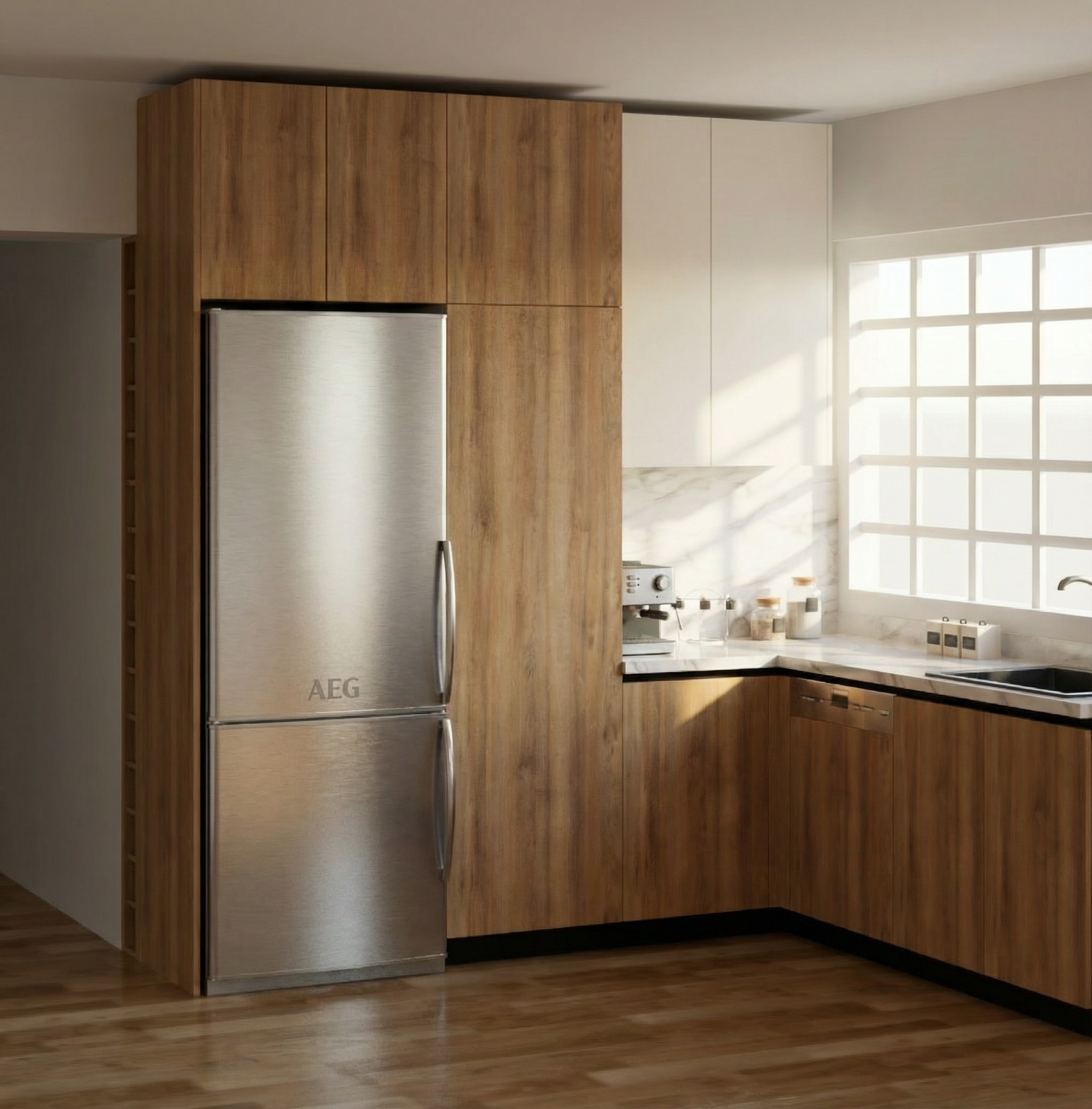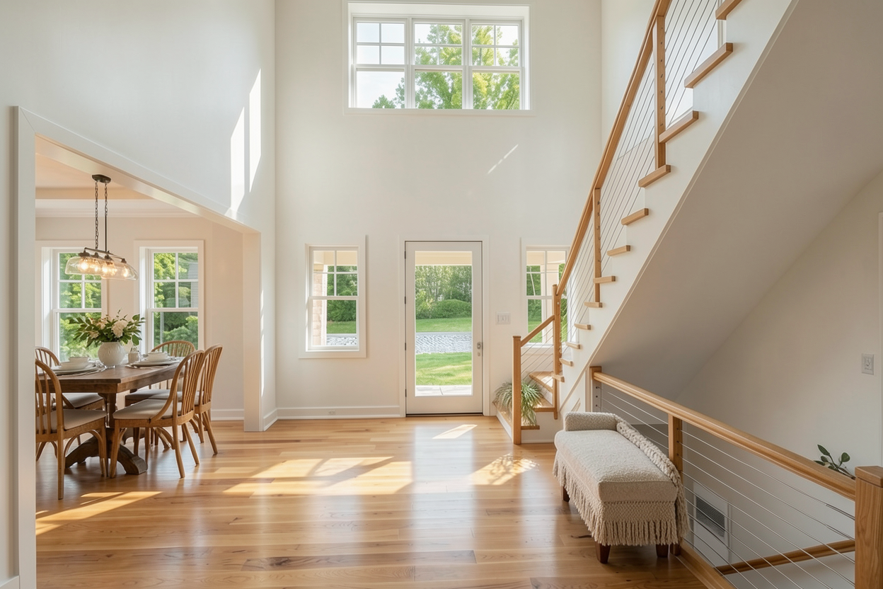 maintain original structure and architecture enhance materials and landscape use soft diffuse light