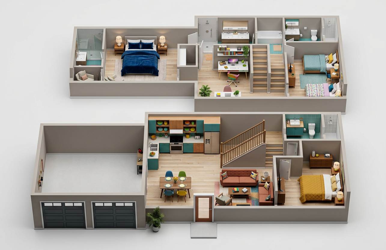 do no change any details other than adding chairs at the island ad breakfast table and chairs on the room in the back