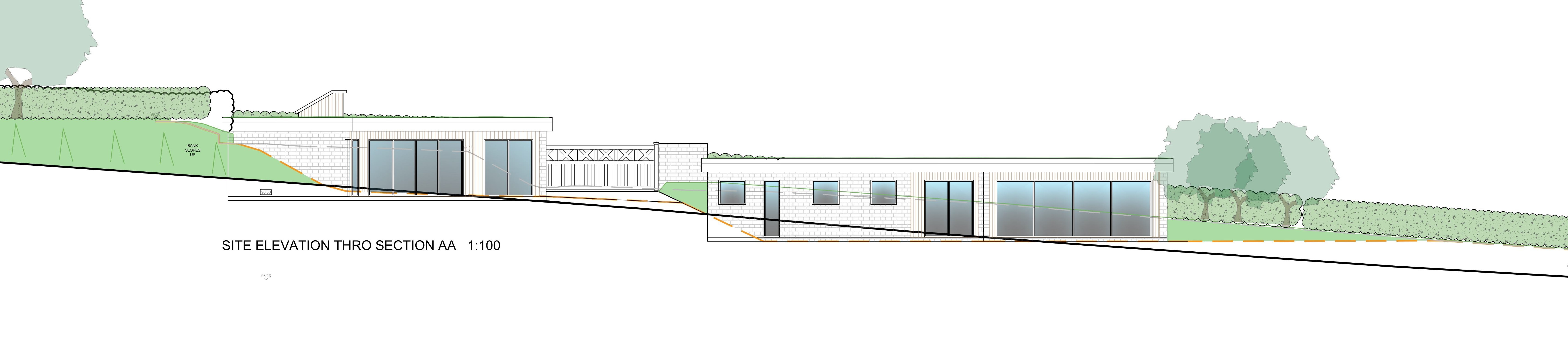 exterior shot light timber boarding and foregrounlaid to turf and wild flower meadow