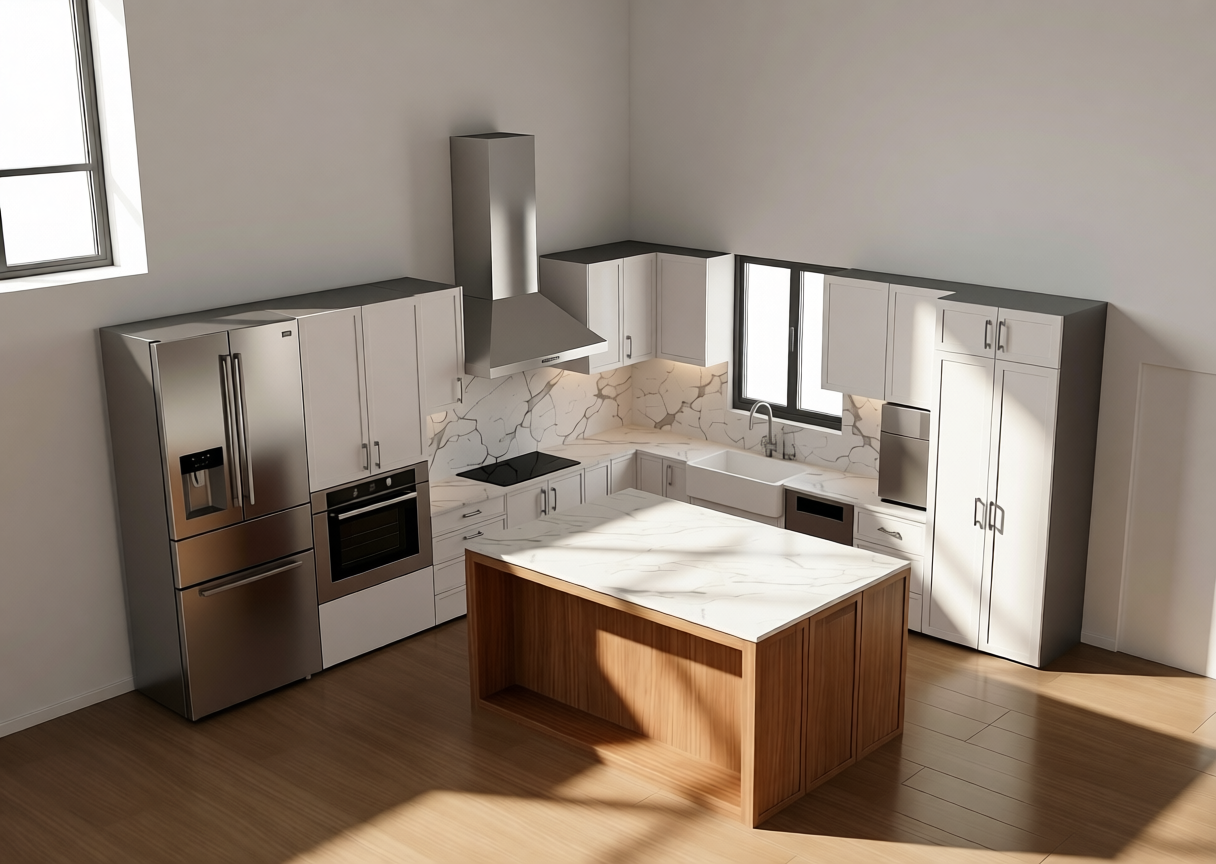 can you illustrate this drawing exactly to scale but with white stone and black roof and make the front entryway and two side peaks look a bit better aesthetically