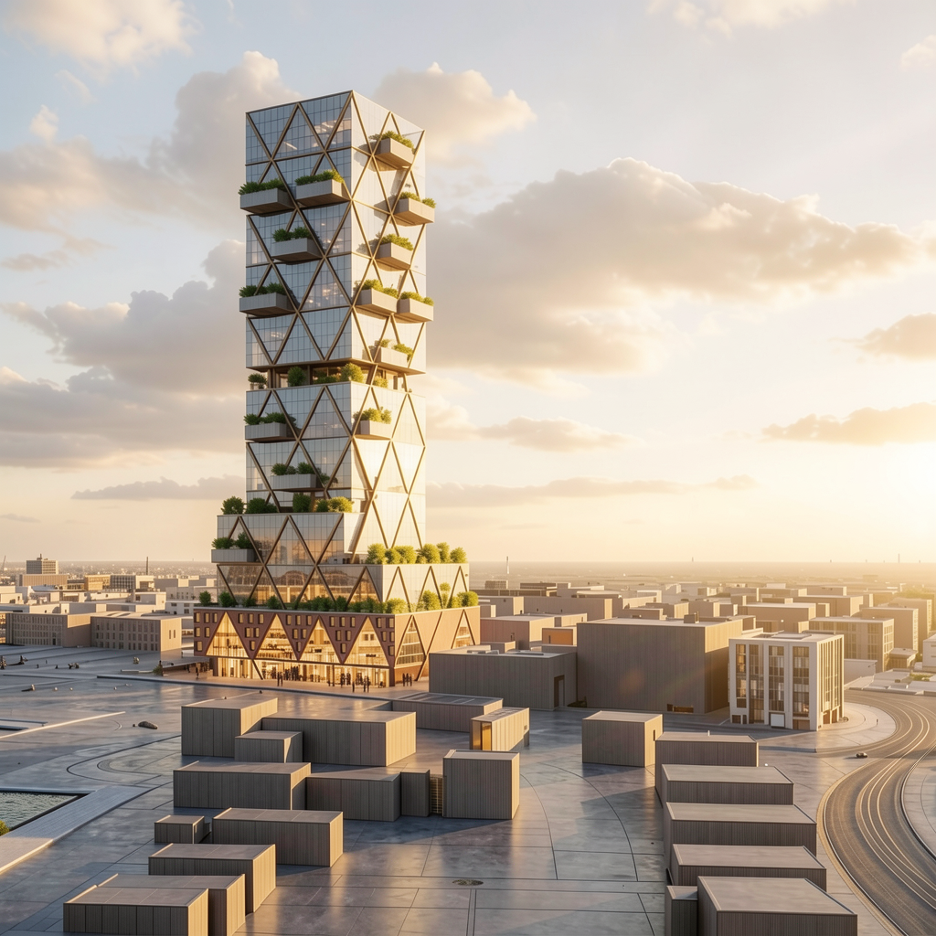 hyper realistic modern architecture bright summer sun vivid lighting ultra high quality clean lines