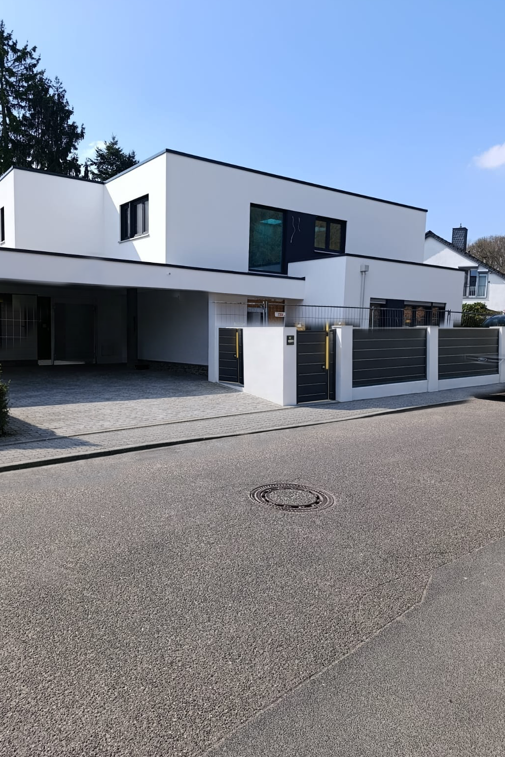 mache eine saubere darstellung mit einer mofernen schwarzen haust r mit hinterleuchteter griffstange