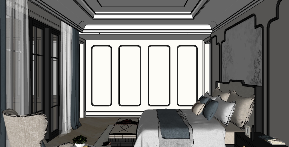 render senyata mungkin tanpa merubah material desain dan warna cat dinding putih warna lis panel klasiknya hitam