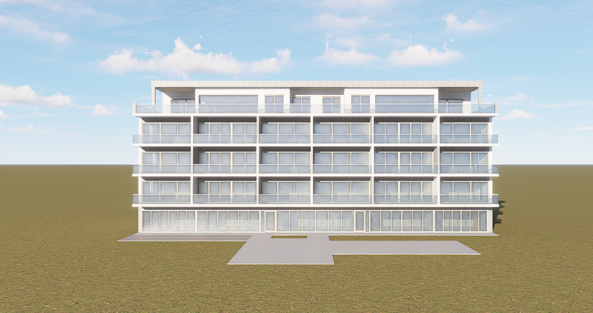 backround is small houses in a small front parcll on the left is terrace for sitting and on the right parcel is small kids playground