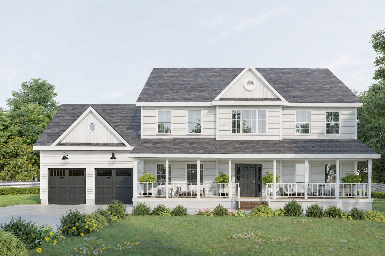 black windows and roof black standing seam metal roof over porch and black asphalt shingle roof over the main house garage